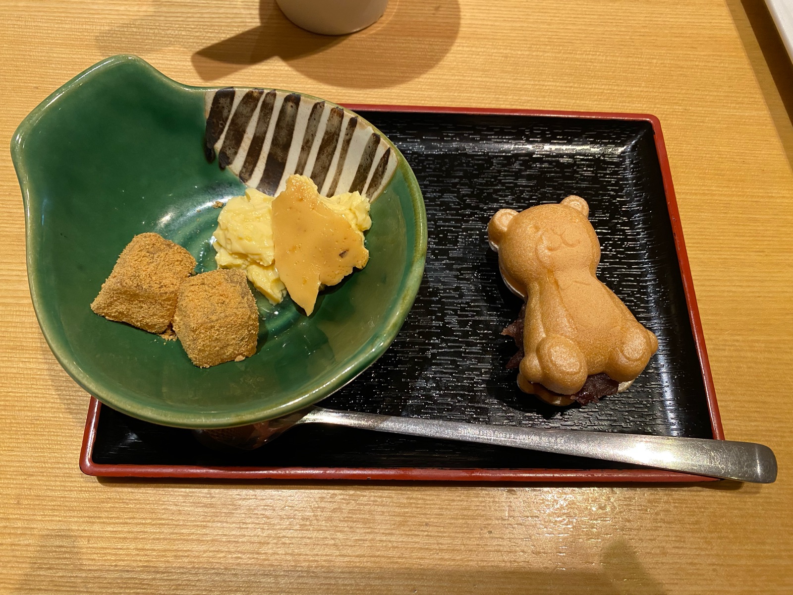 わらびもち・プリン・最中にアイスコーヒー。