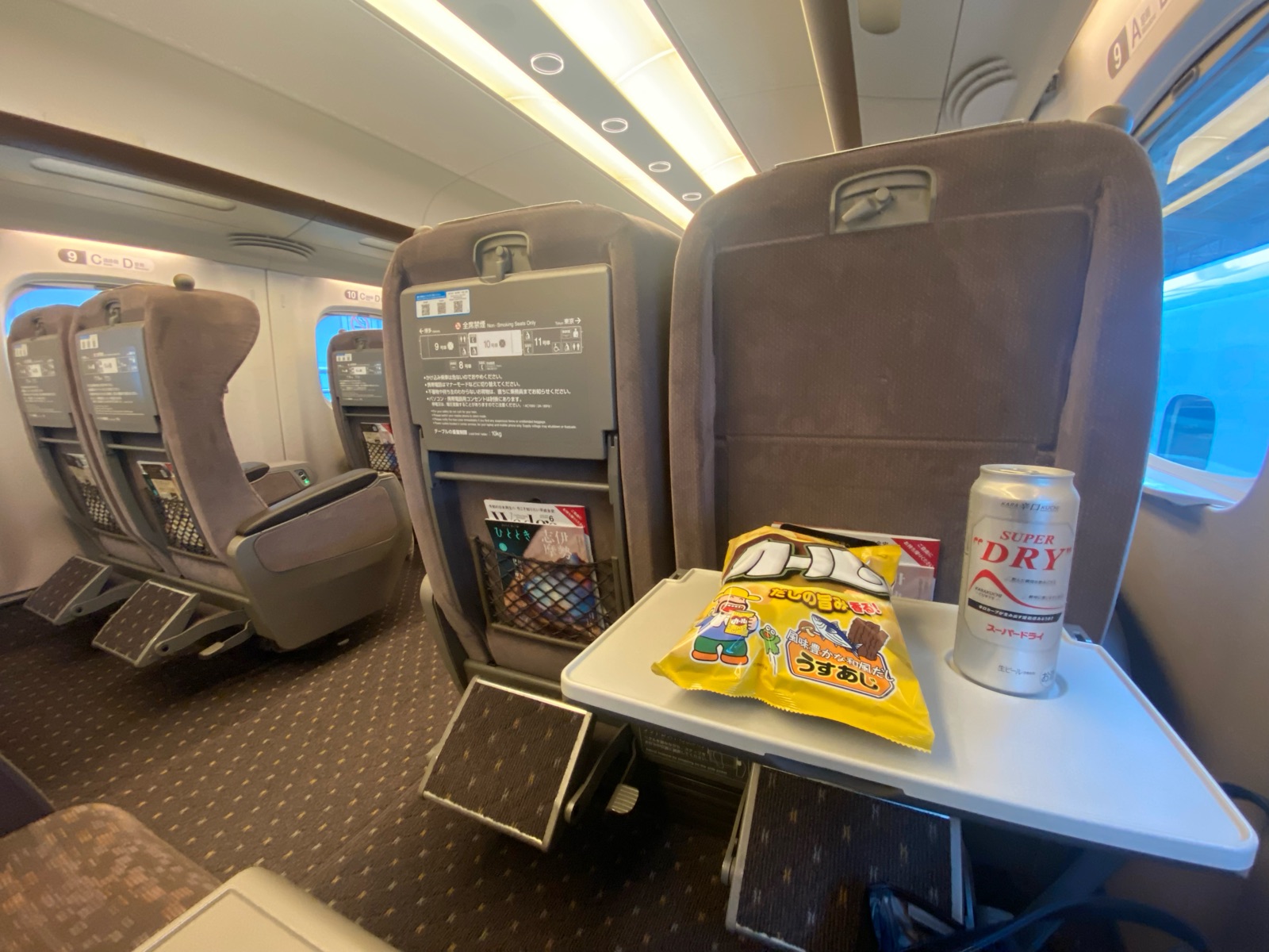 グリーン車でビールなど。。^m^ グリーン車って快適♪