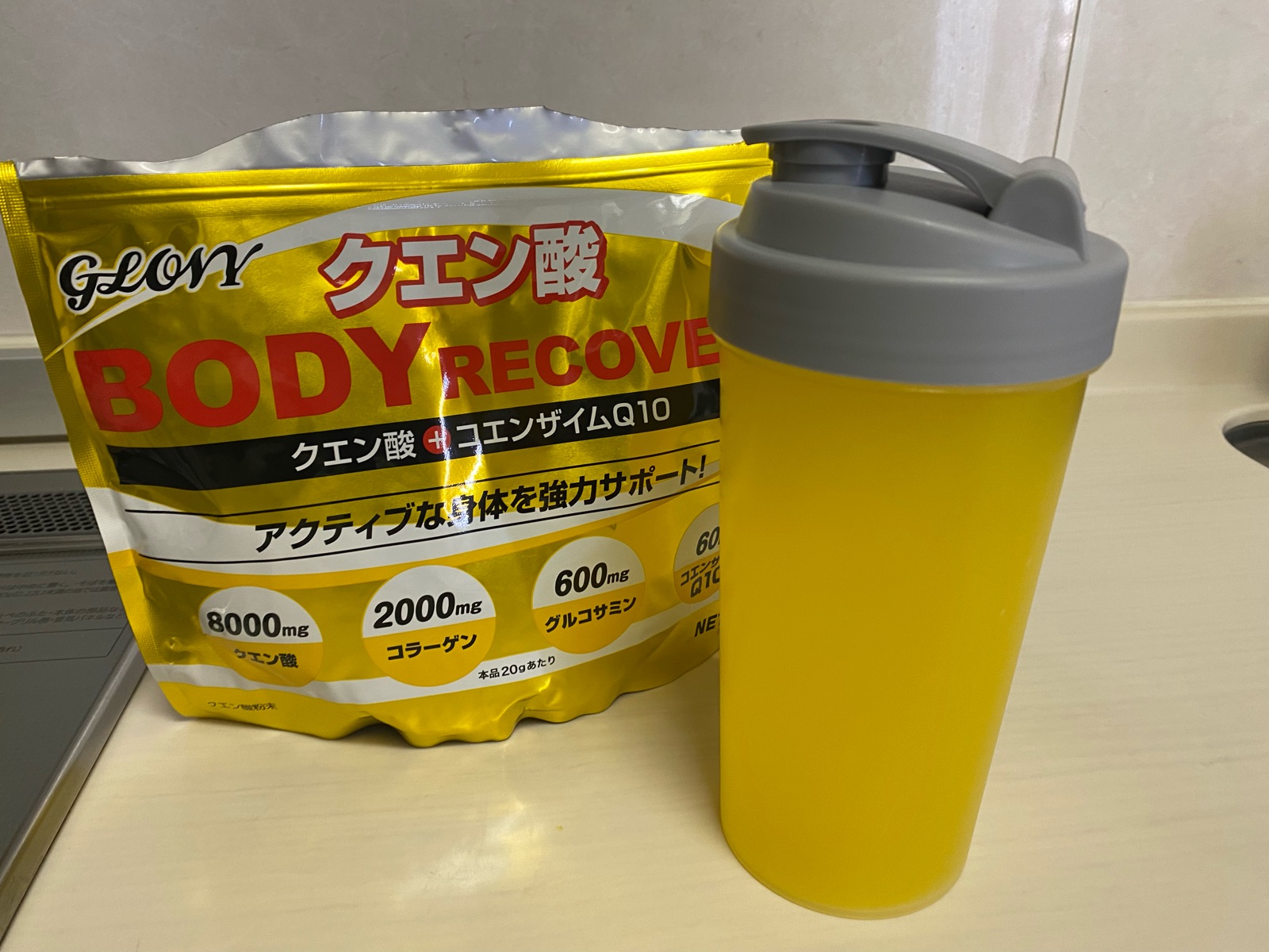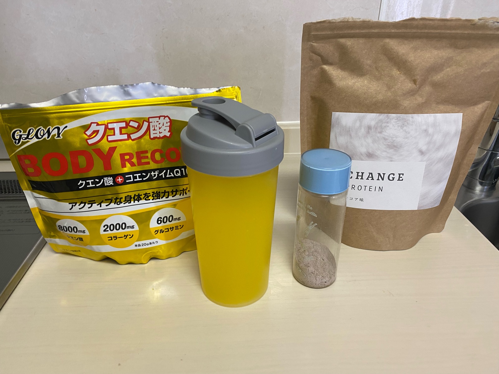 クエン酸を運動中に、運動後にプロテイン♪2つをバッグに入れて持参しています。
