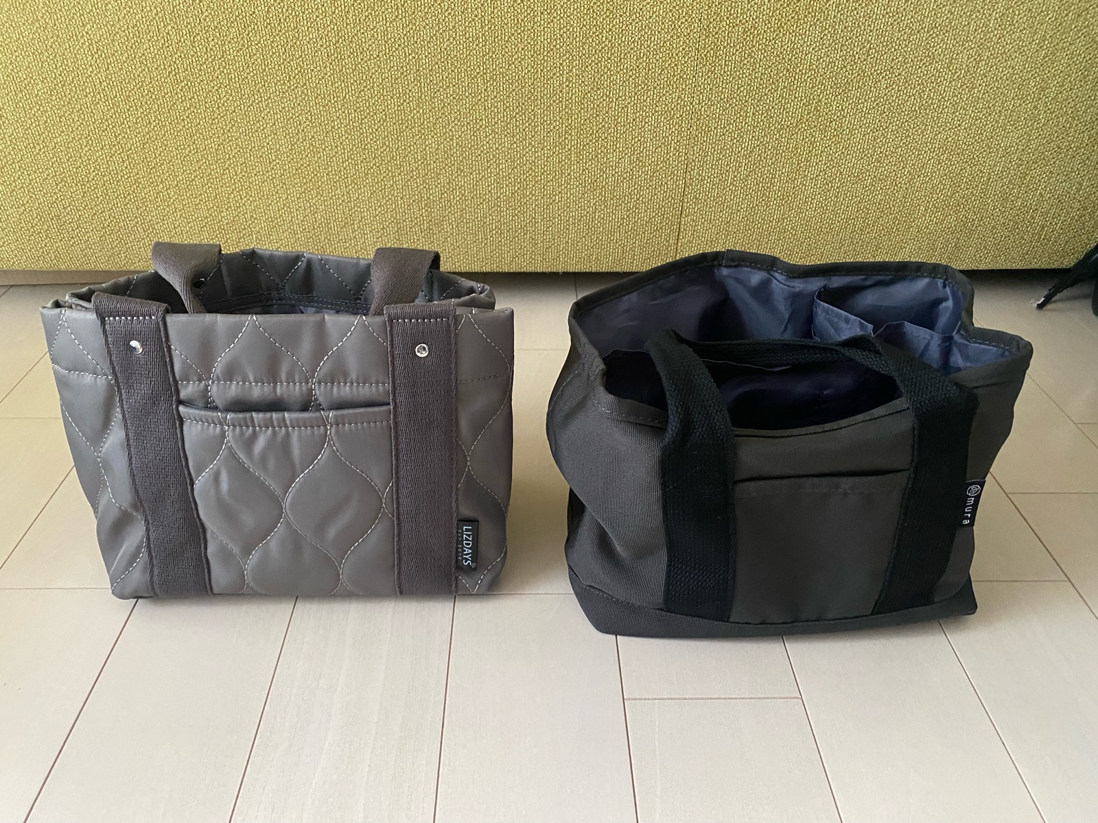 以前と同じく、次は仕切りの底面は縫い付けられていないミニトート+防水で探して