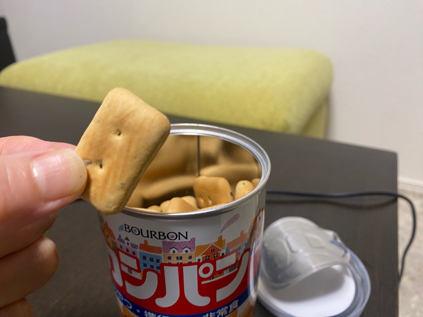 非常食のボックスの中からカンパンを取り出し。