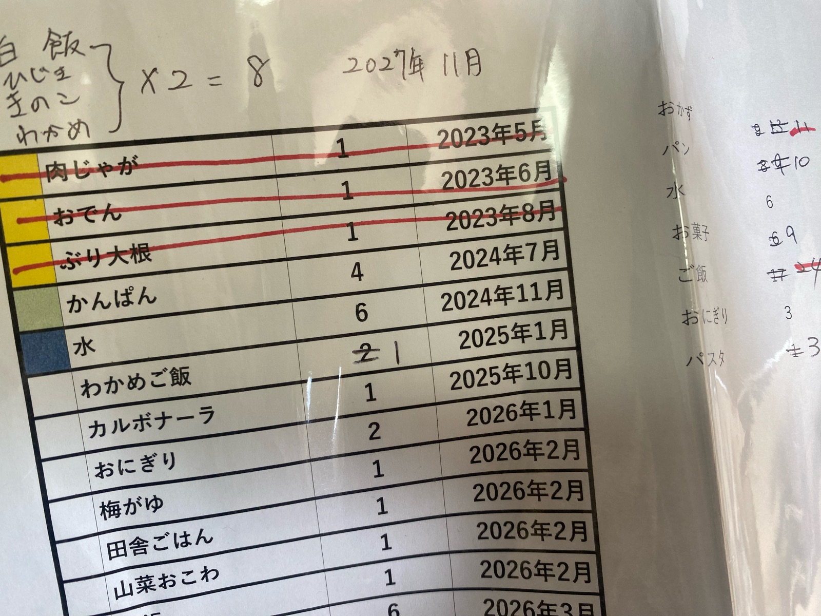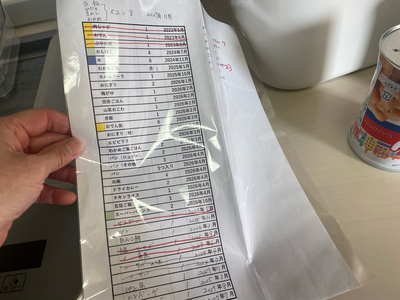 そんなこんなで、非常食の在庫チェックと新しい在庫表が作れました。