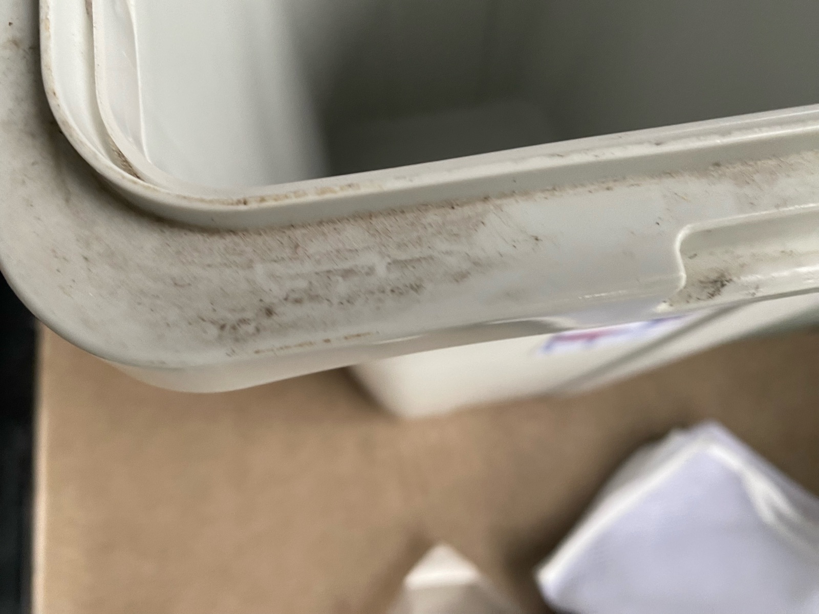ビル風の向きによって、フタが開く事があり中に砂埃。