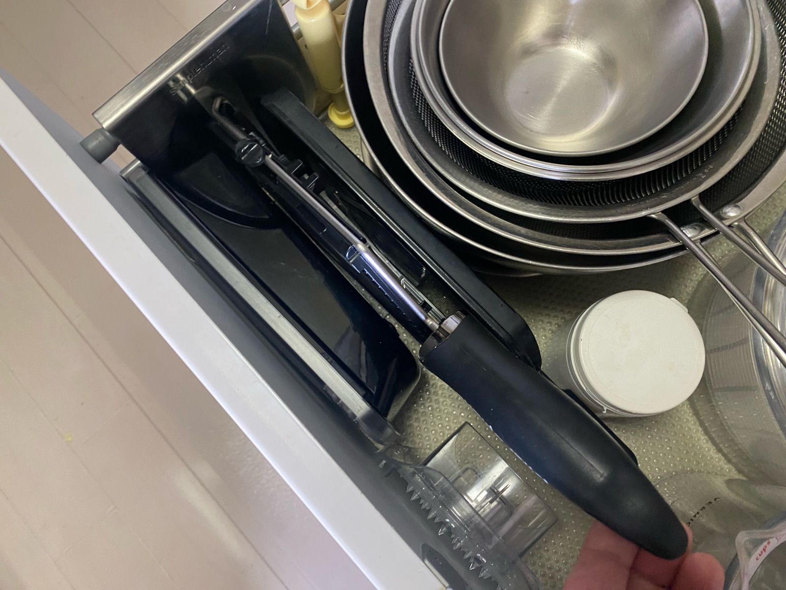 スライサーや大根おろし器を取り出すのは問題無かったのですが
