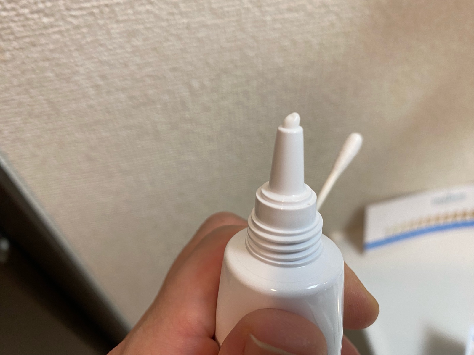 歯磨き(歯石取りでしっかりやって貰った)、歯の水分をティッシュで拭き取りジェルを塗る。