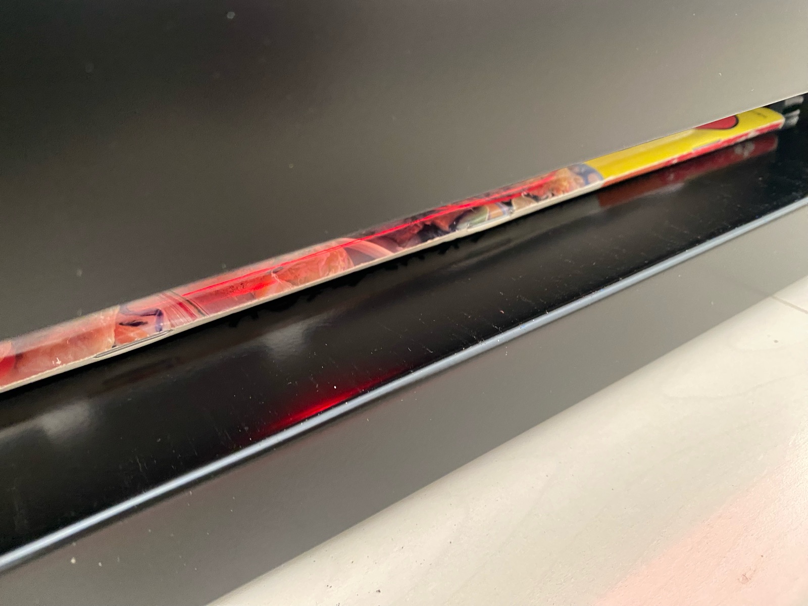 裁断される所を、赤いライトのガイド線で確認できるのが便利。