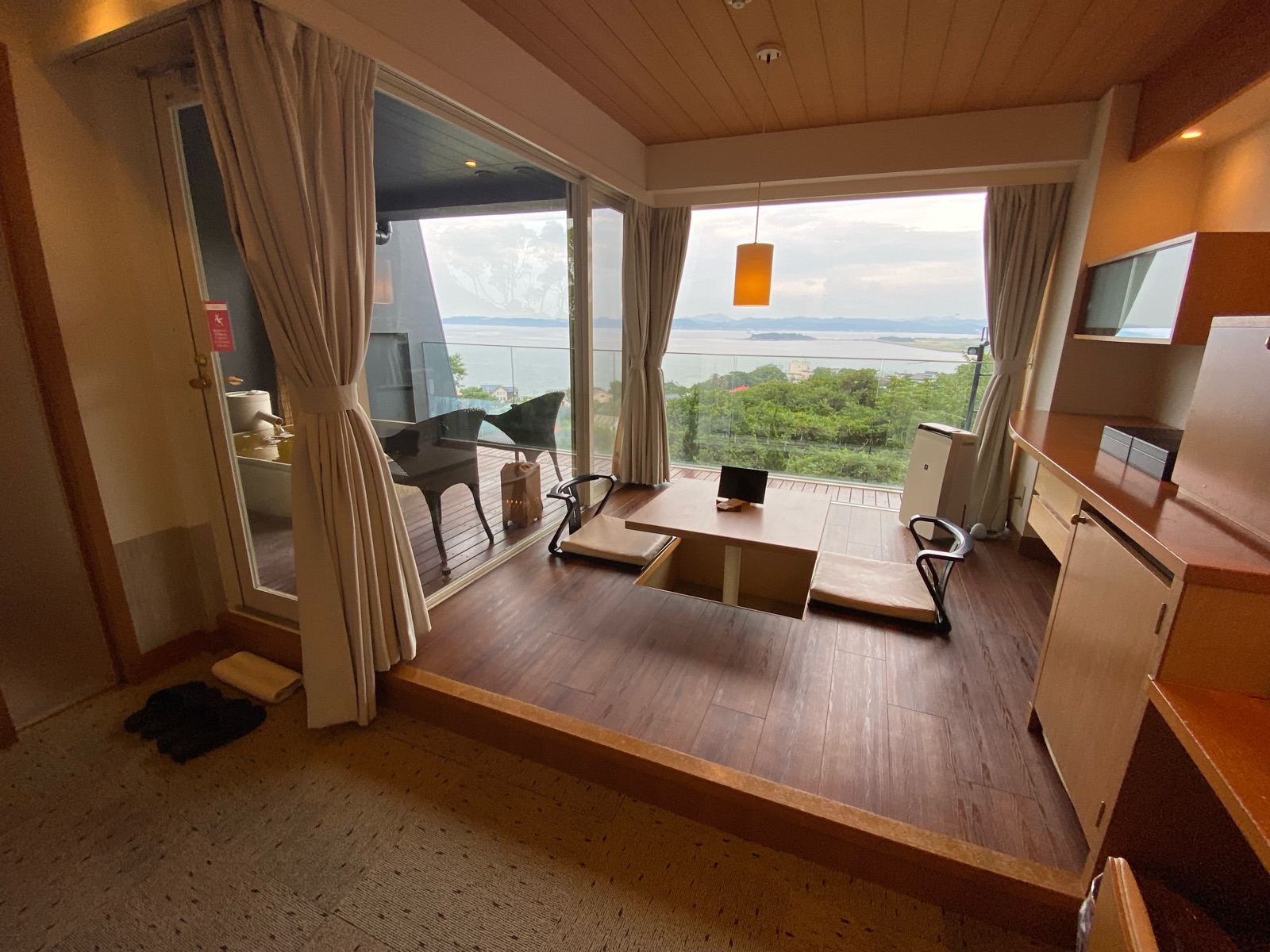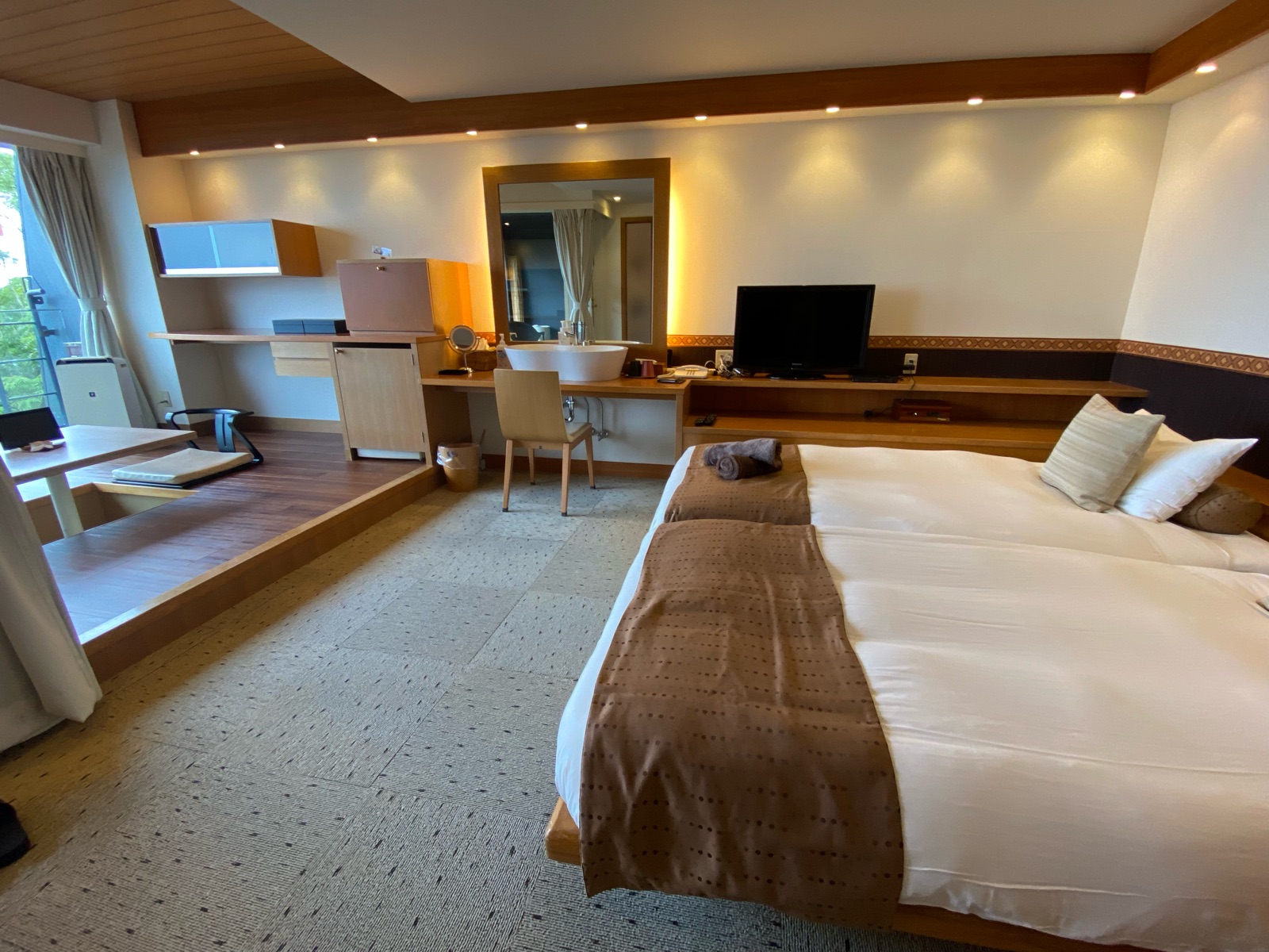 ベッドルームだけじゃなく、床の間には掘りごたつのテーブル。