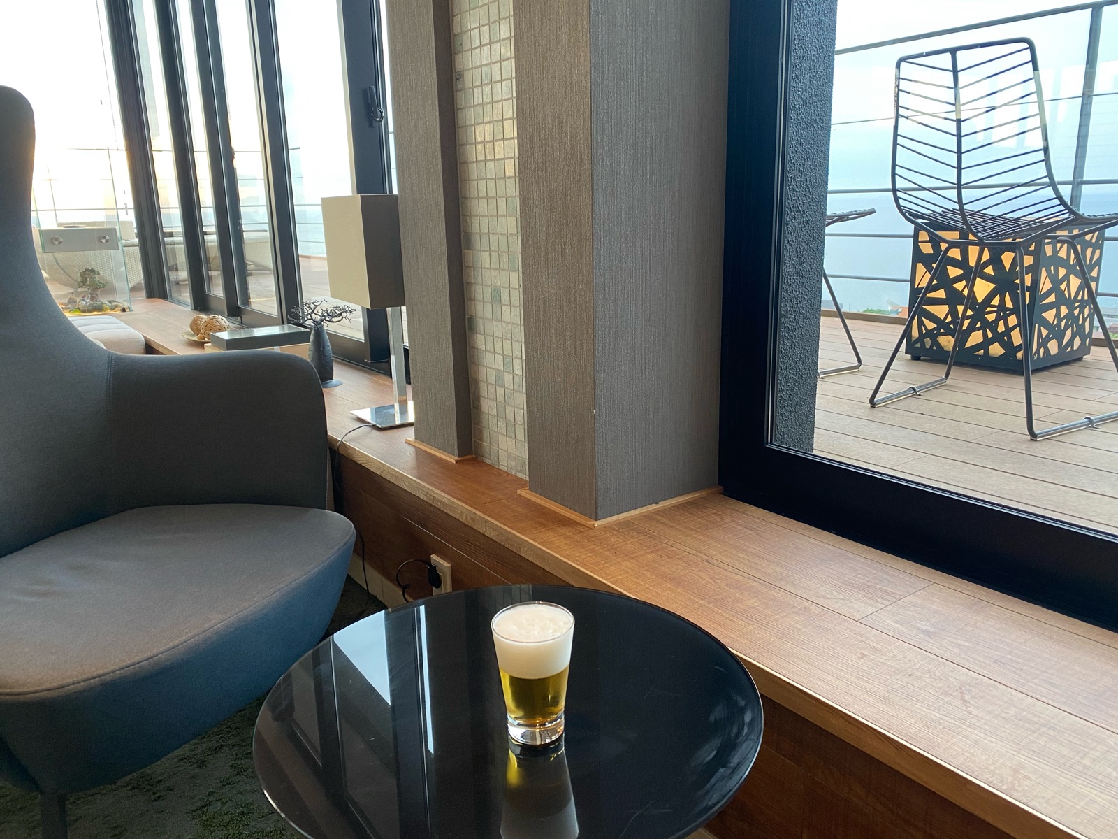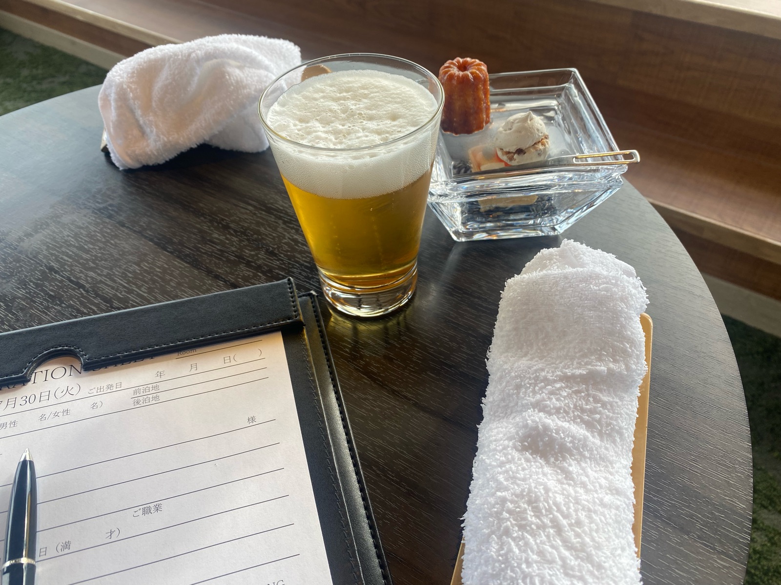 チェックインしてすぐにビール一気飲み!