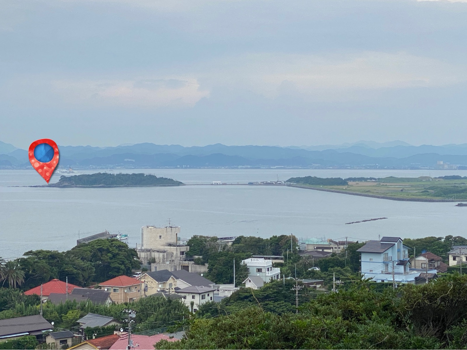 丁度正面に先ほど遊んでいた沖ノ島が見える!