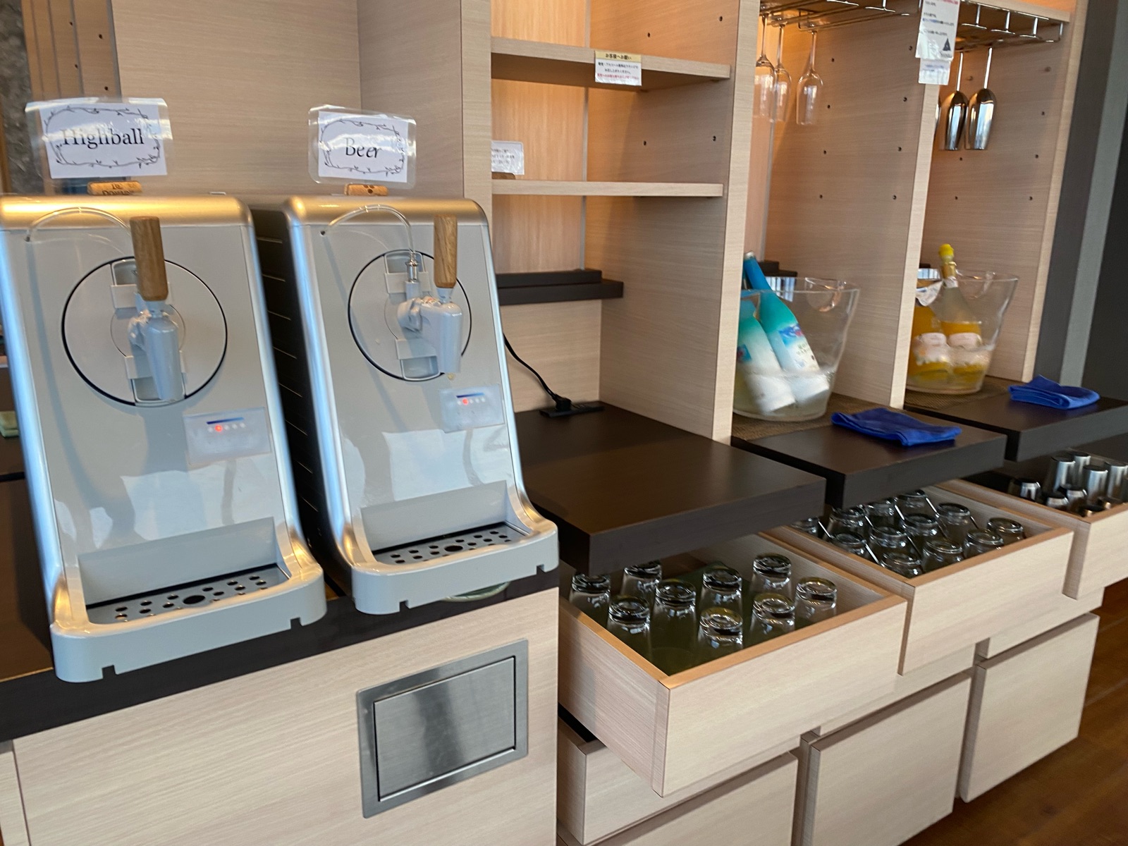 ソフトドリンクだけじゃなく、ビール、ハイボール、ワインなどが夜の10時まで飲み放題♪