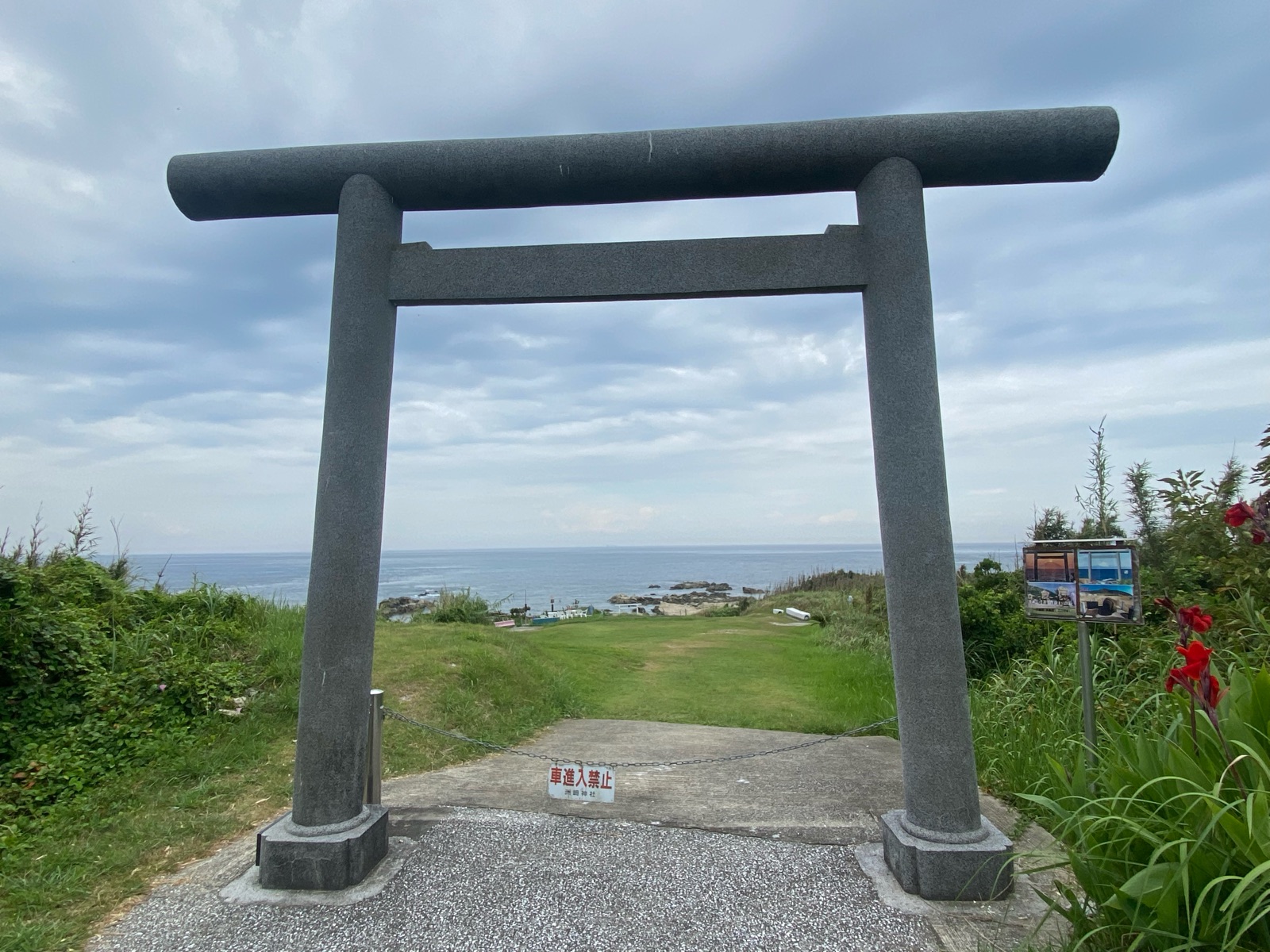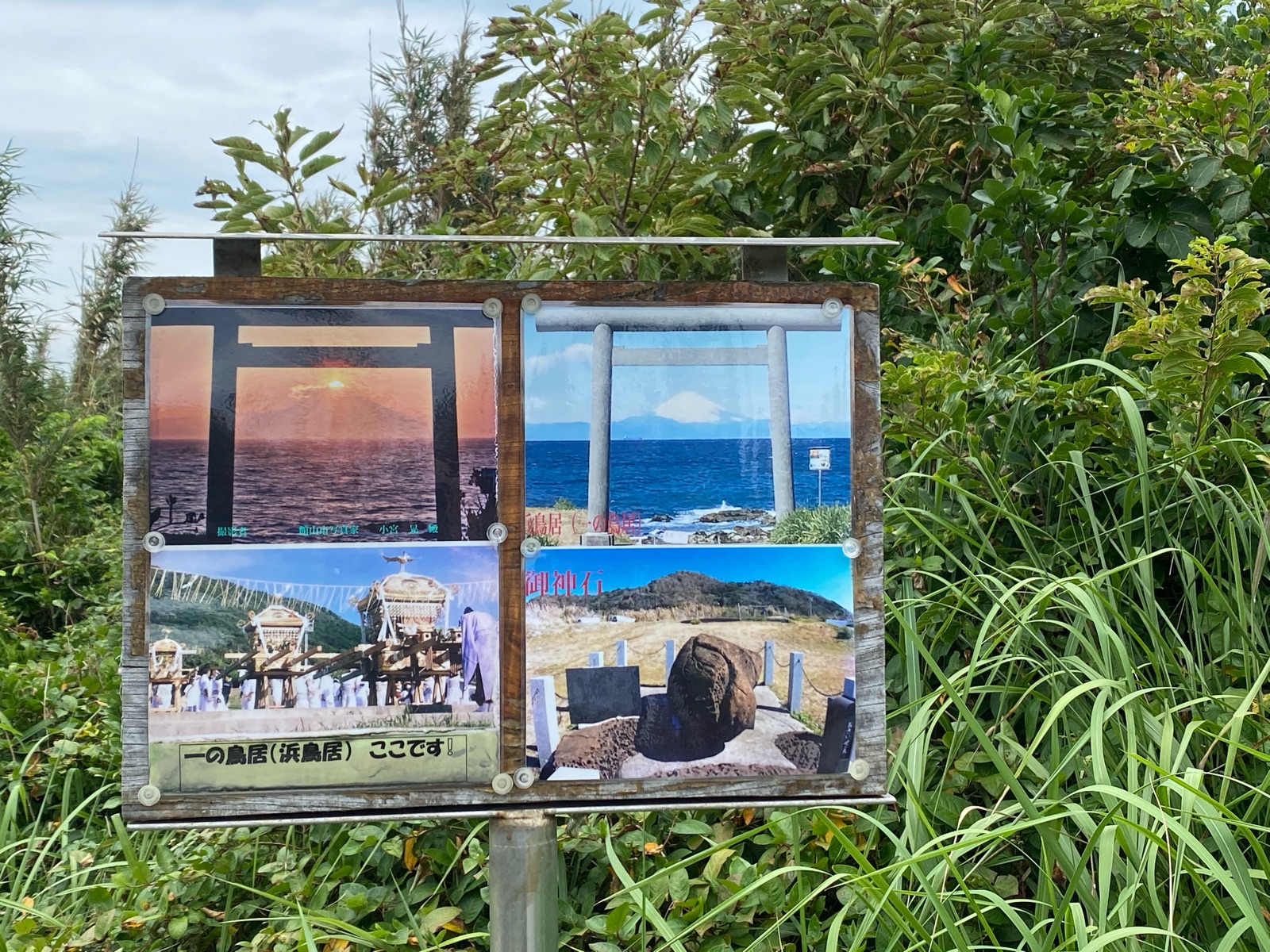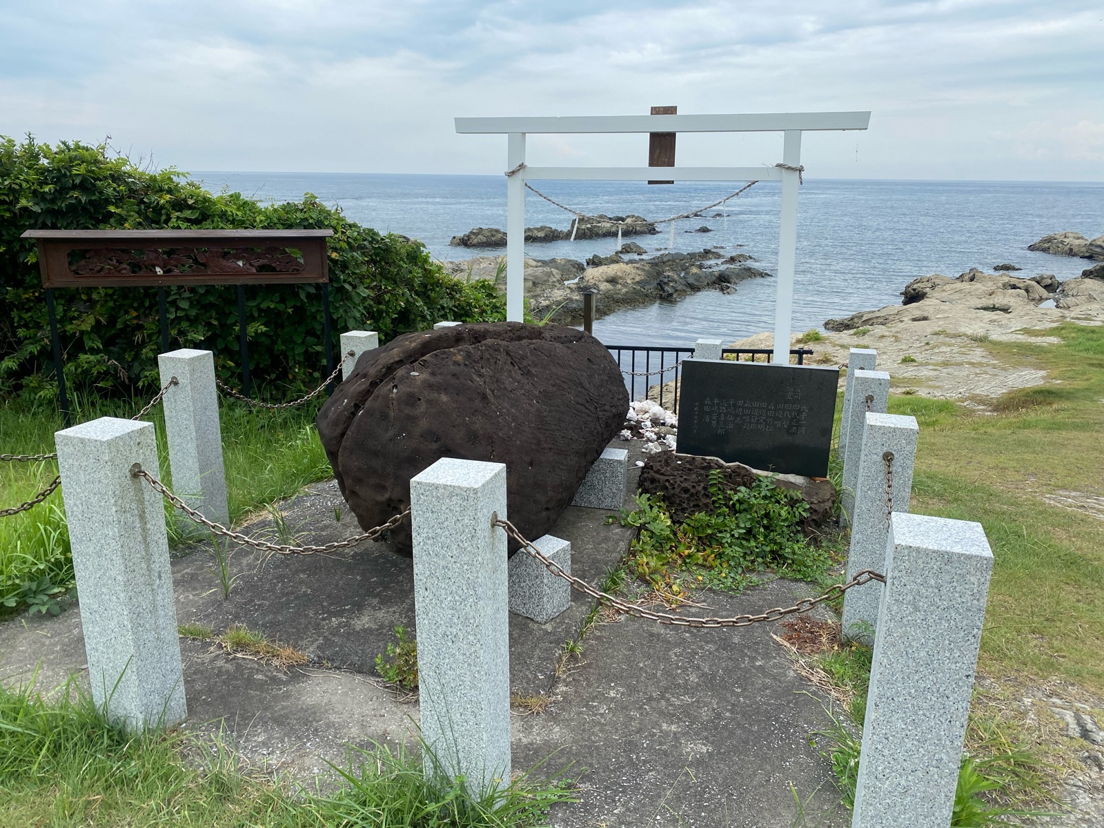 海側にも有名な「御神石」があるとの事で海岸へ、鳥居の横に写真があり