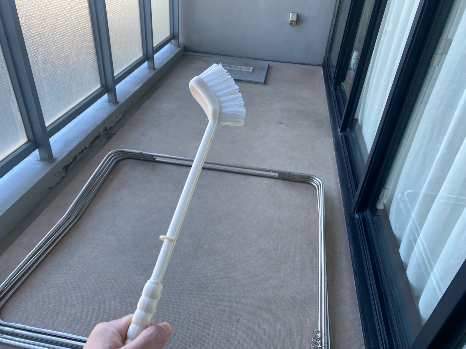 半分以上のベランダ掃除が終了!!