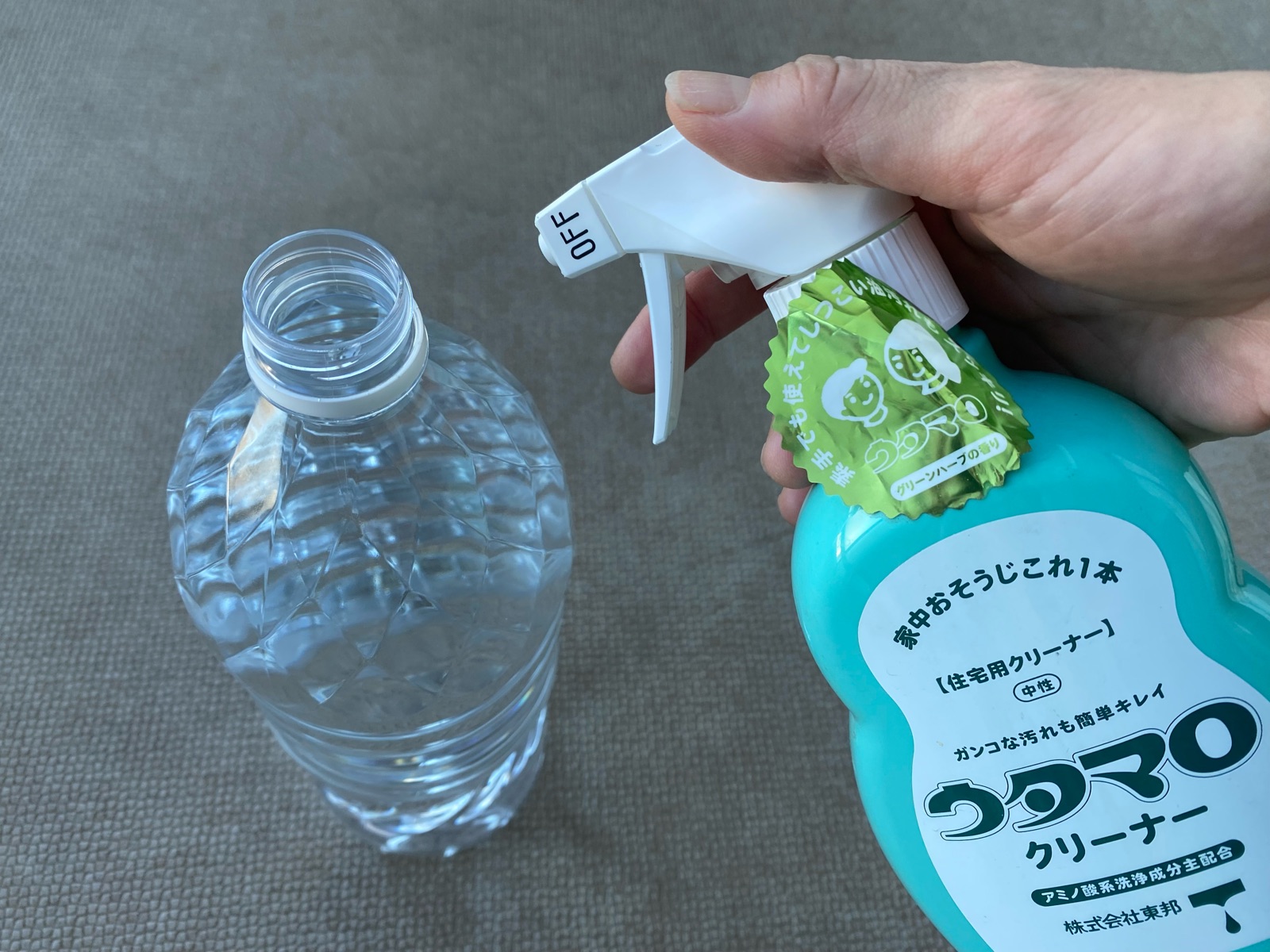 ためていたペットボトルにウタマロを3プッシュくらい。