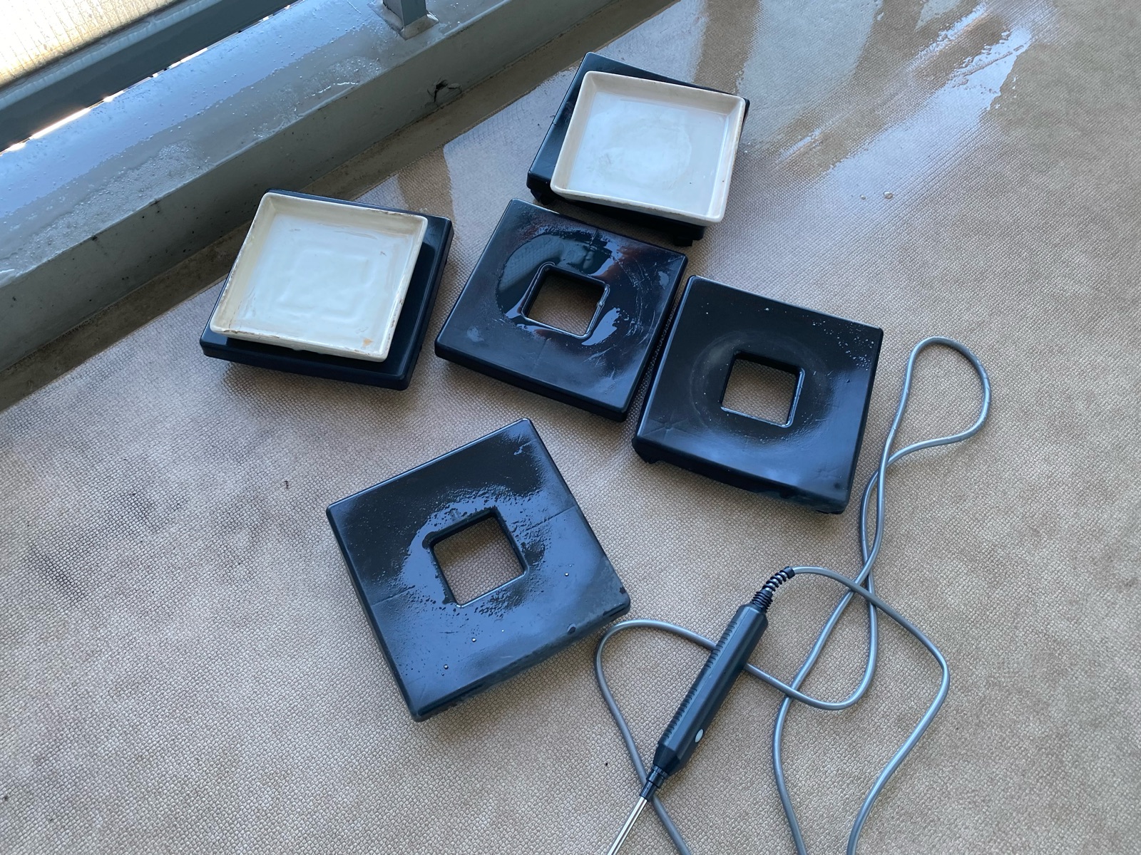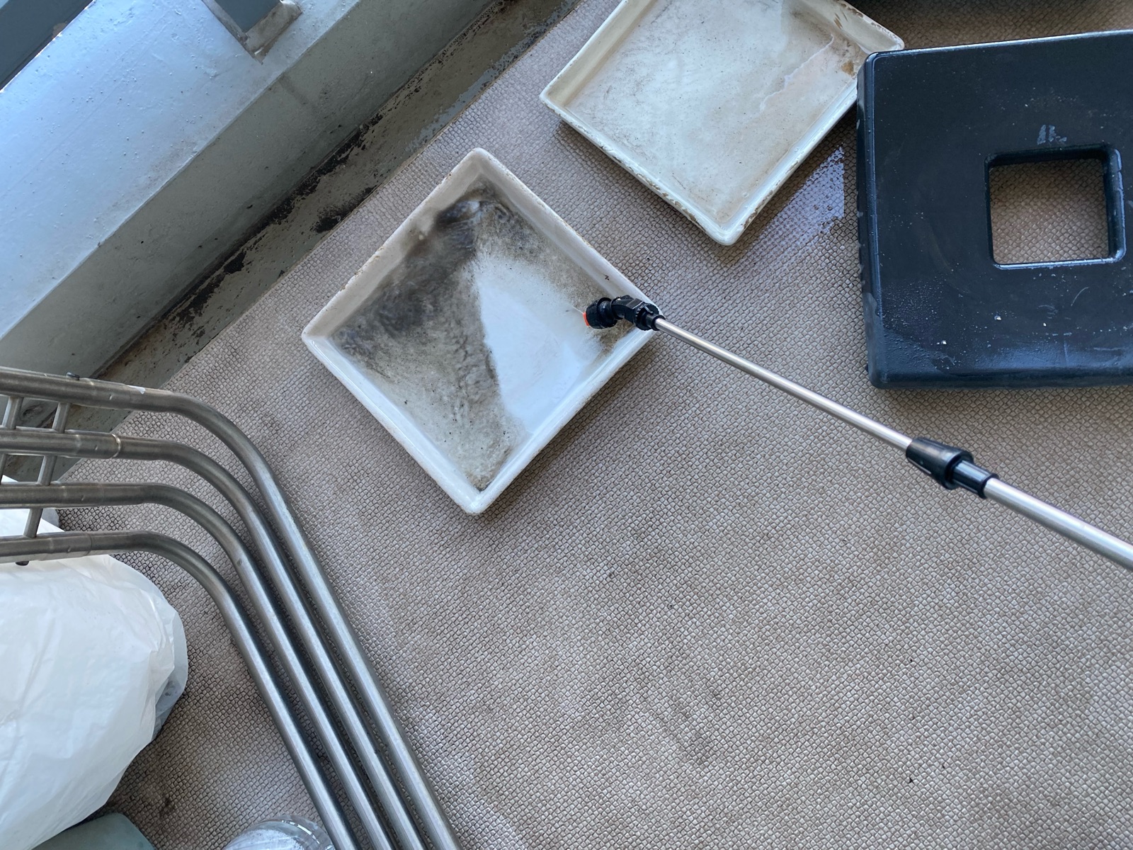 植木鉢の受け皿や、植木鉢をのせていたキャスター付きの台も水洗い。