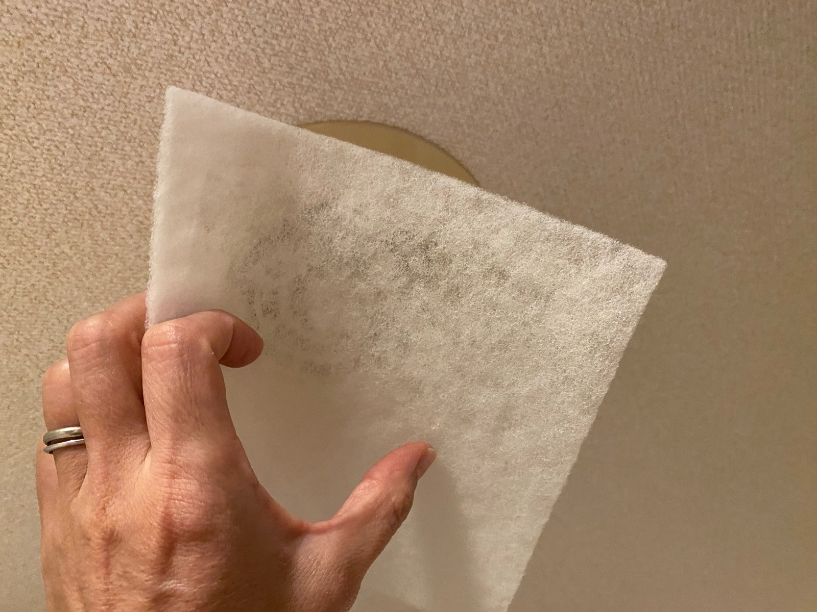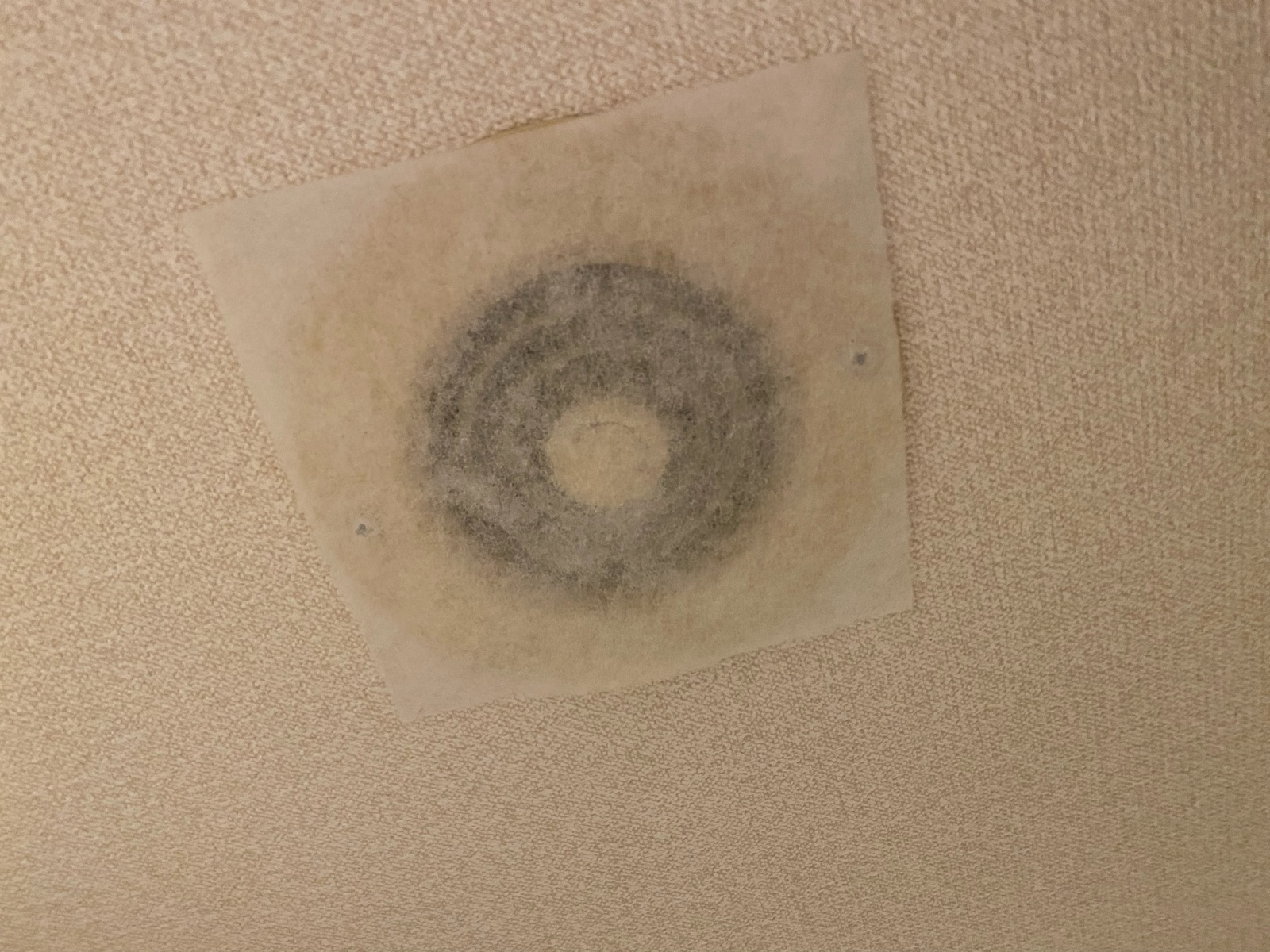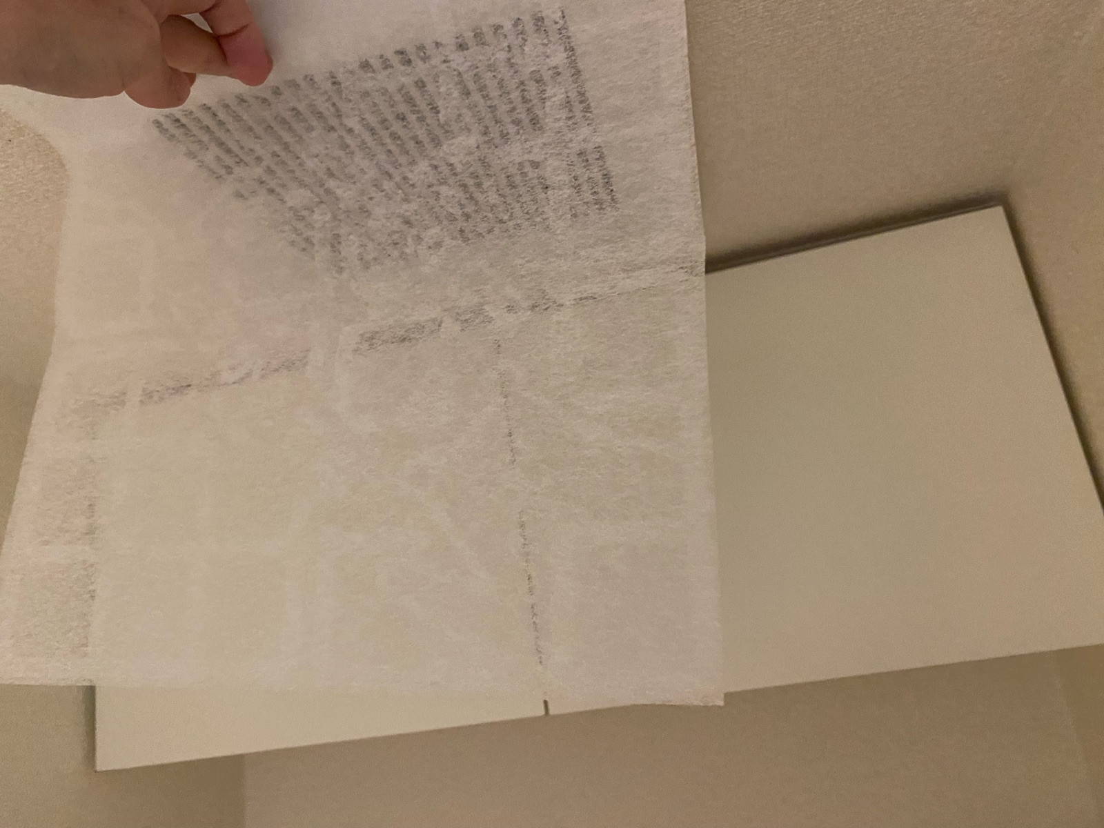 フィルターを剥がすと、外側よりも換気扇側の方が黒くなっている。
