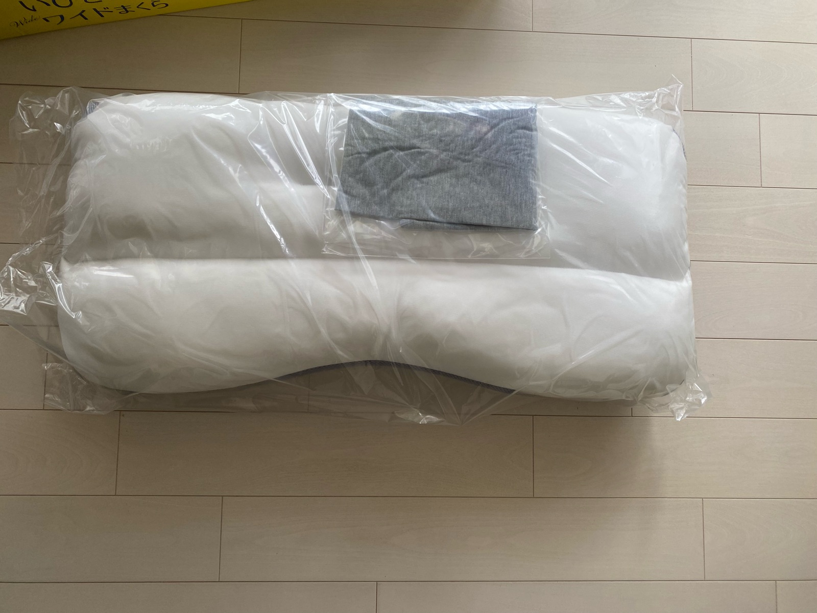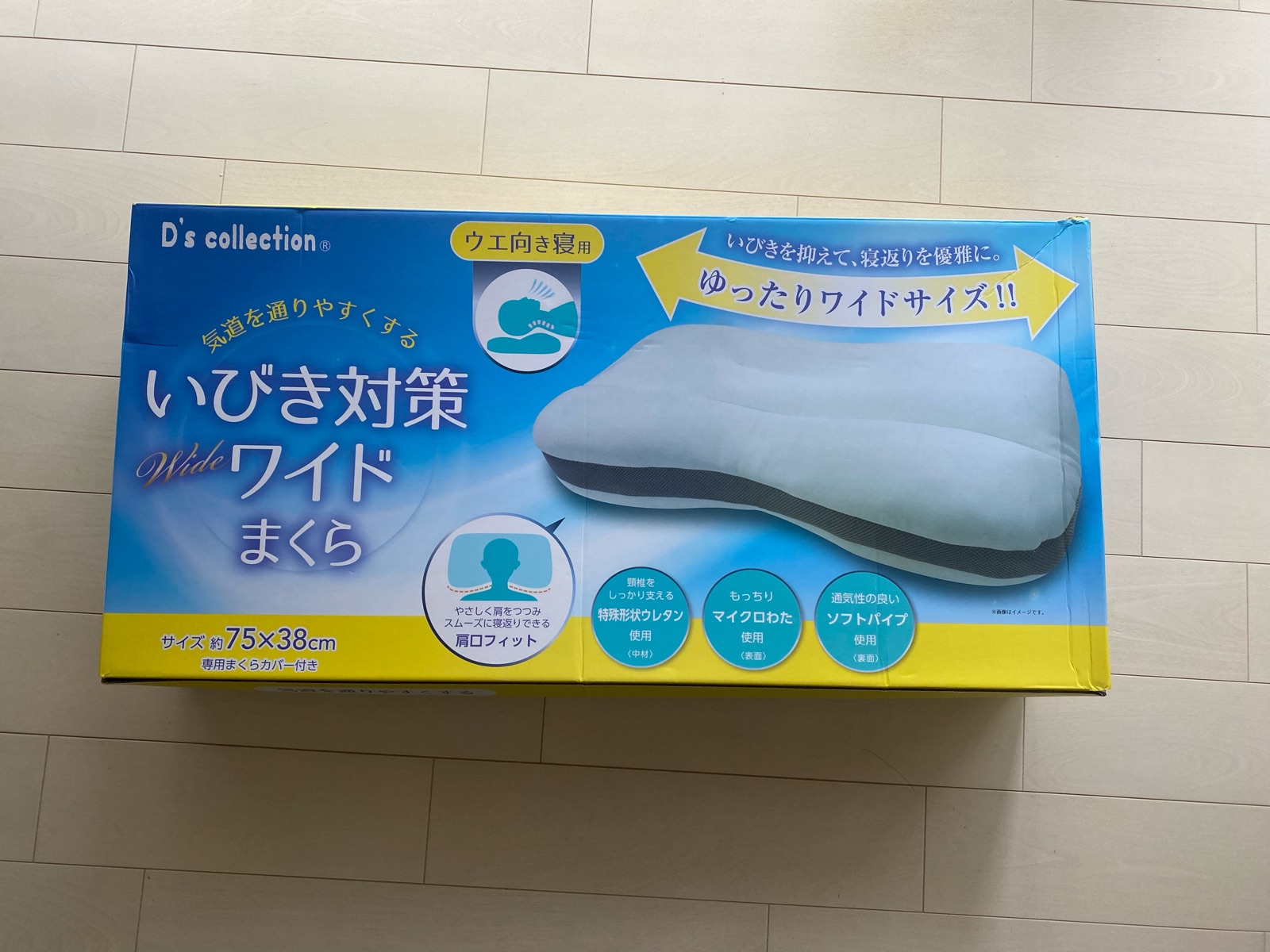 サイズに驚いて箱を再度みてみると、「ワイドまくら」って言うだけあって、大きさが約75×38cm