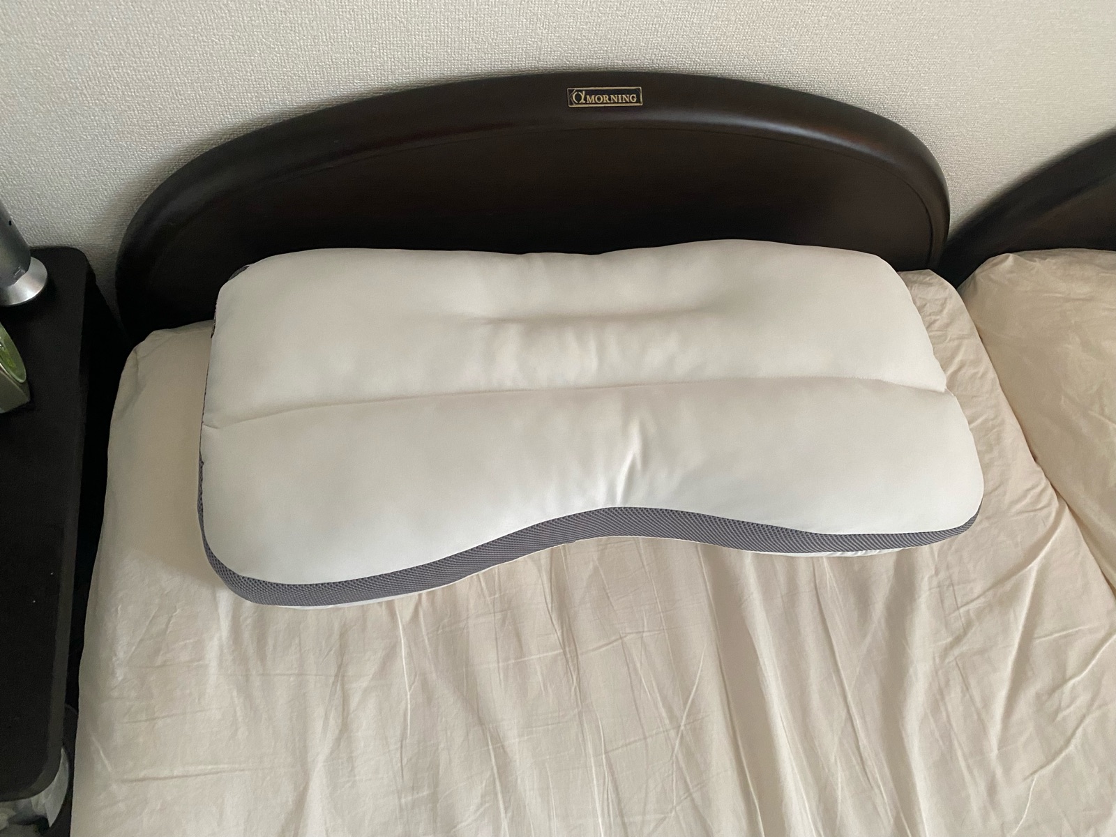 「いびき対策ワイドまくら(上向き用)」を首側から写真に撮ると