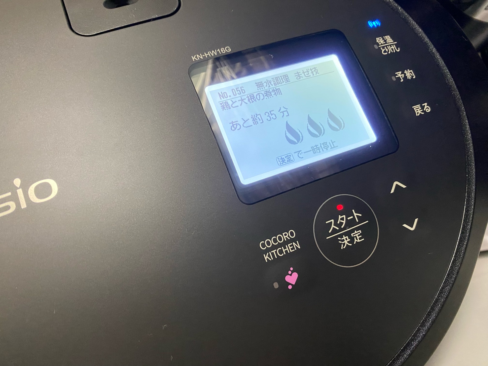 スイッチを押すと「美味しくできます様に」「コトコト煮込んでいます」など