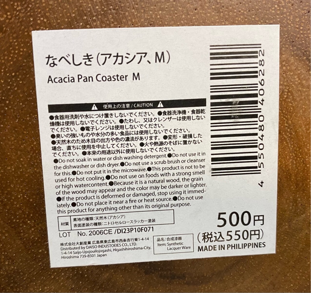 フライパンで調理したものと、お鍋の2つを熱々で食べたい時用にもう一つ鍋敷きが欲しかった♪