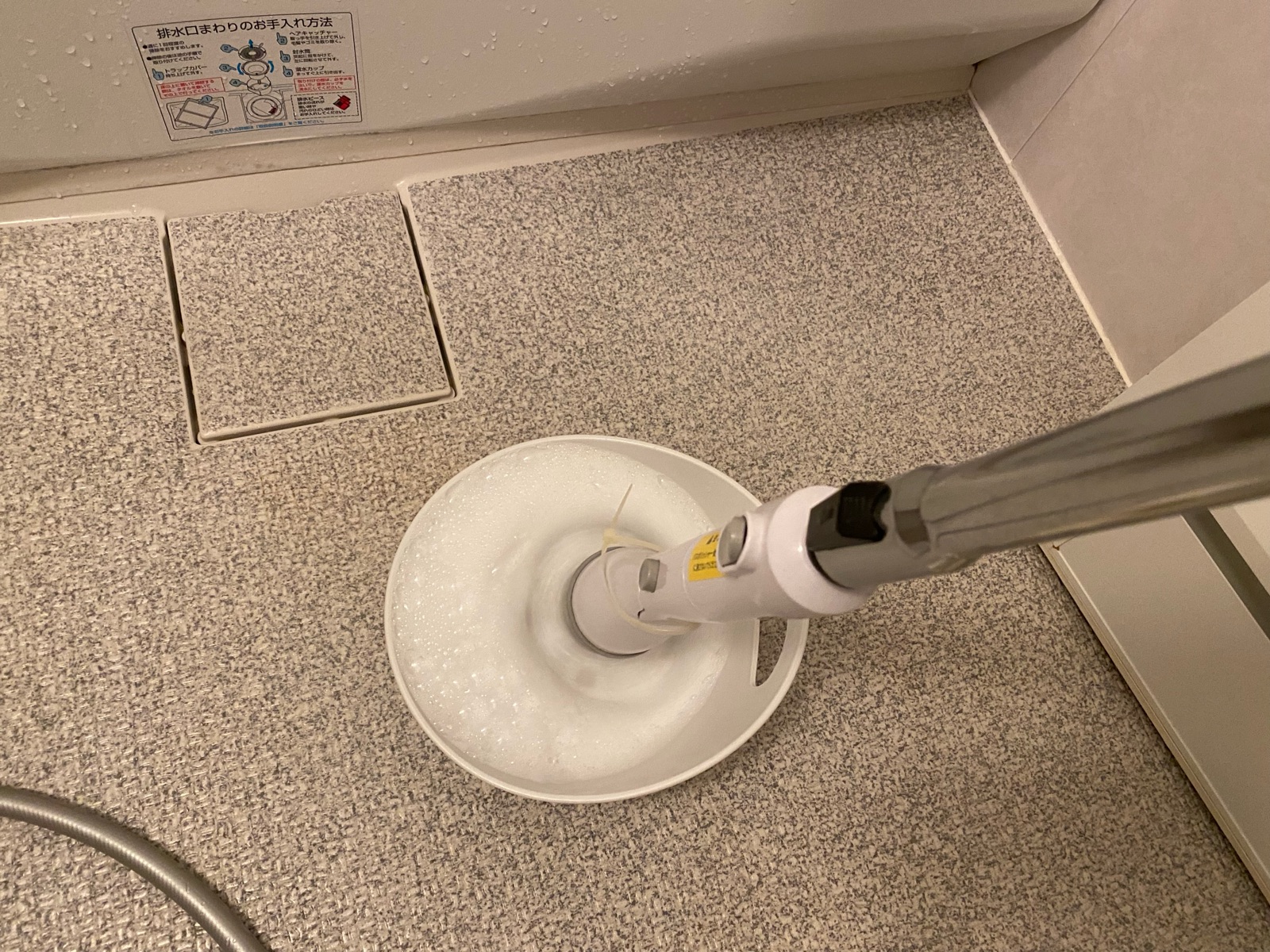そのまま、電動ブラシで床掃除しながら泡を塗り広げ