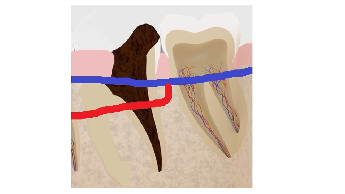 半分になった奥歯が下の方(歯茎の中)ヒビがある事がわかり