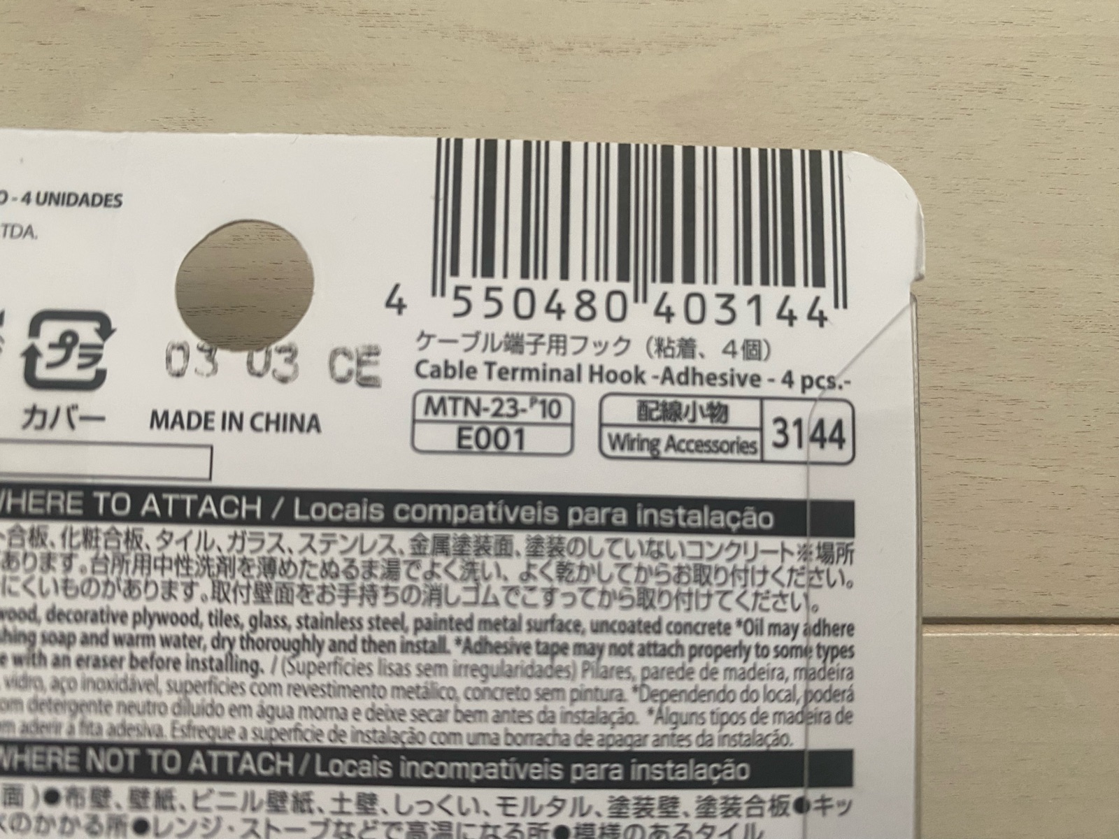 ダイソー 「ケーブル端子用フック」 4個入り 税込み110円