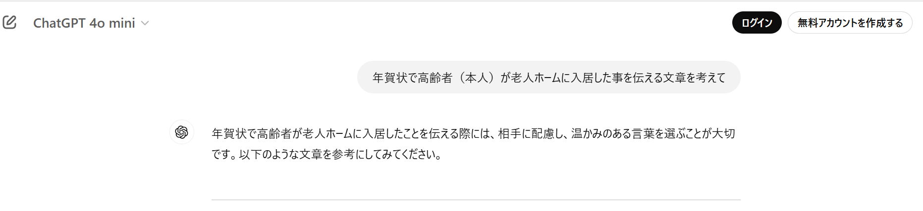 義母さんが老人ホームへ入居と転居したお知らせ文を年賀状に記載するのに