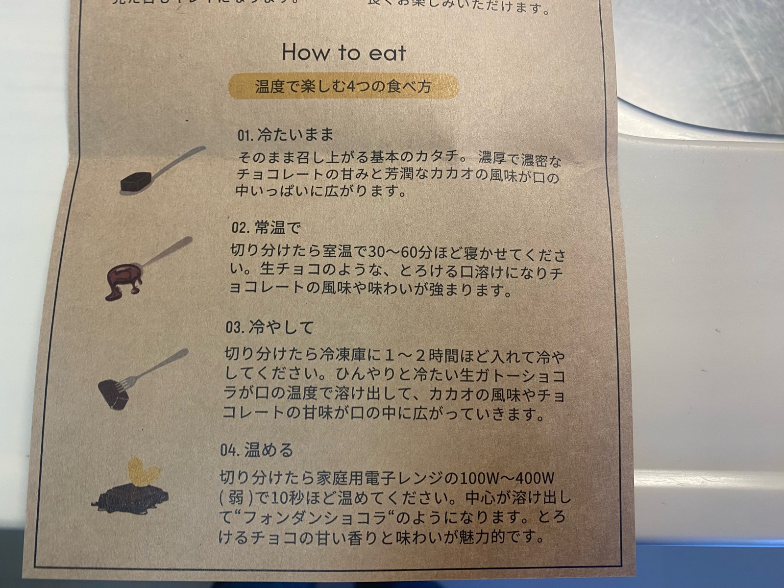 チョコレートなので温度で食べ方が色々楽しめます。