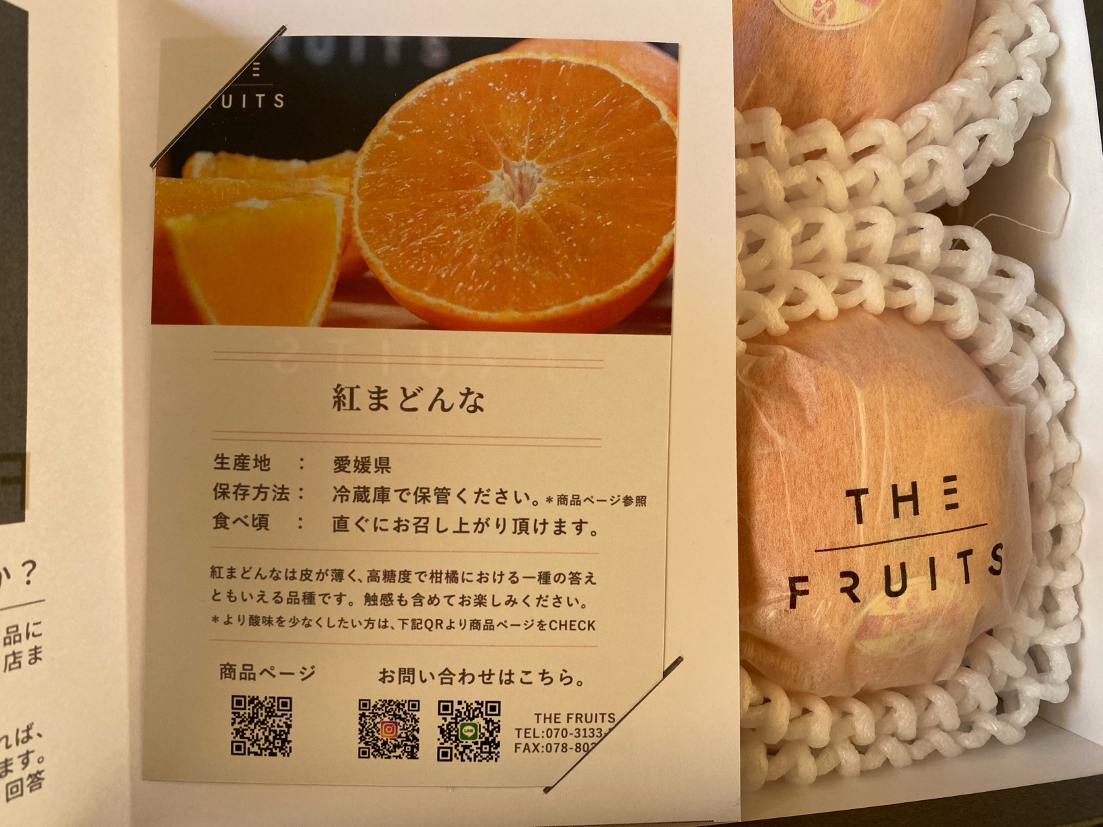 中のカードには、保存方法や食べ頃が記載されているので