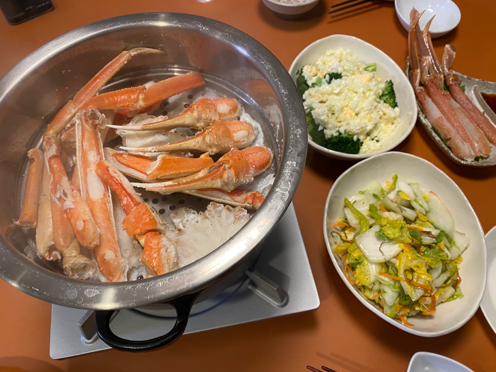 大きな脚は4本ほど生でお刺身にして、残りは蒸しカニに!