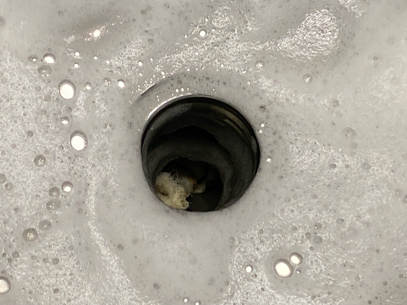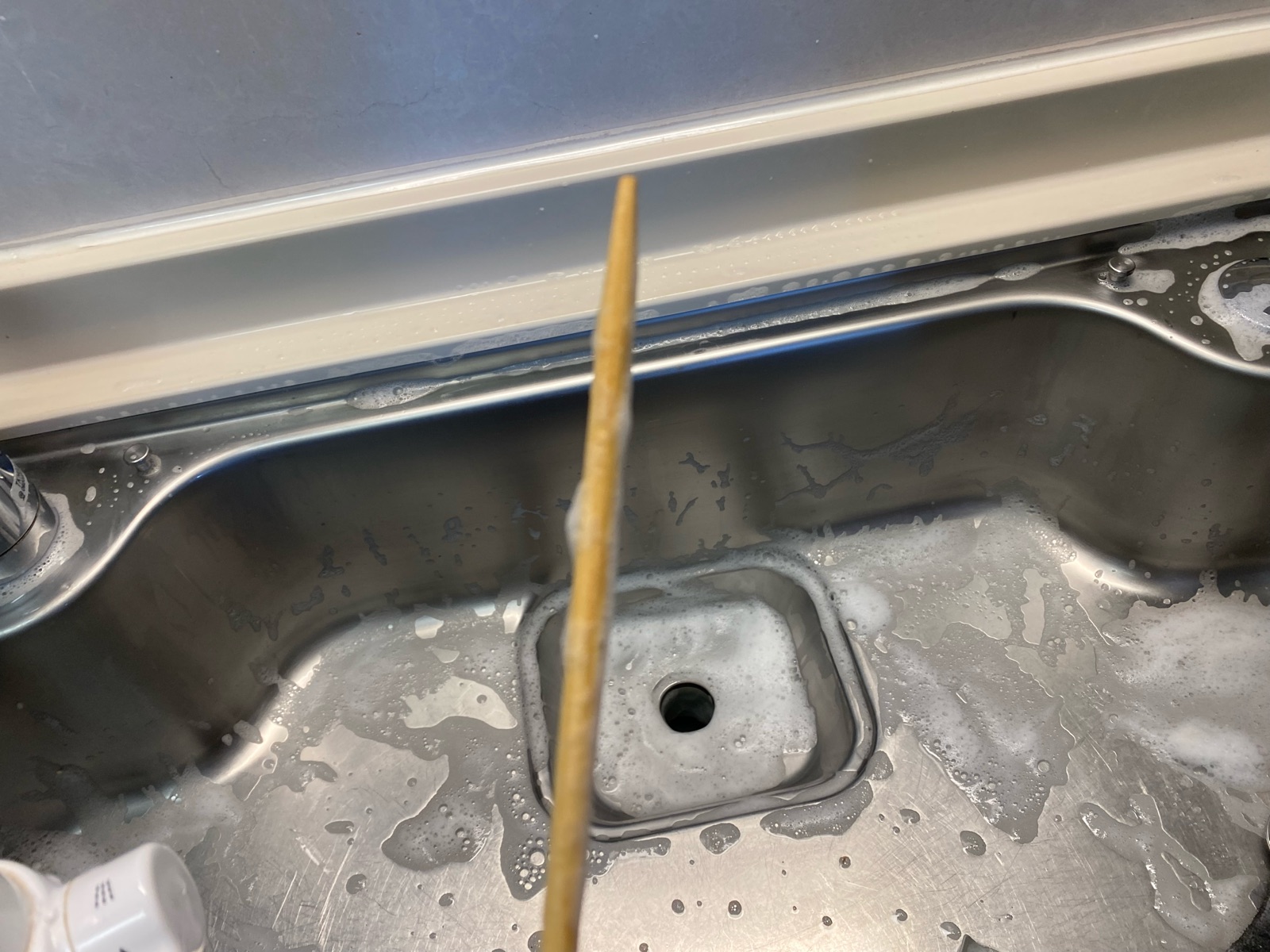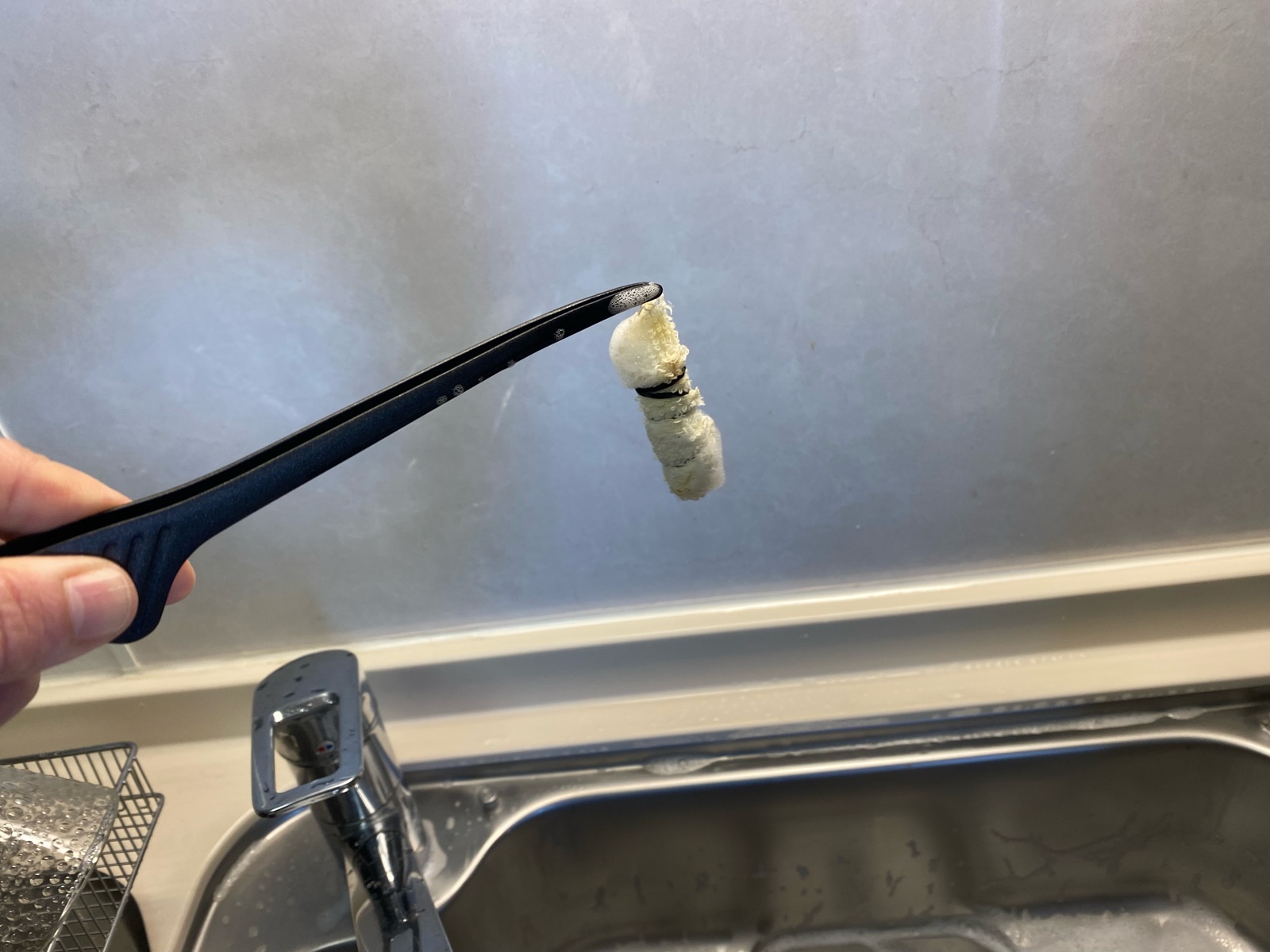 ドキドキしながらトングを排水口の中へ