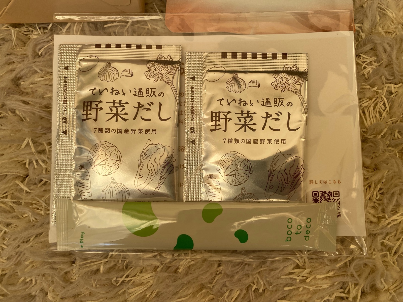 オマケで「野菜だし」と「boco to deco」のセットを頂きました。