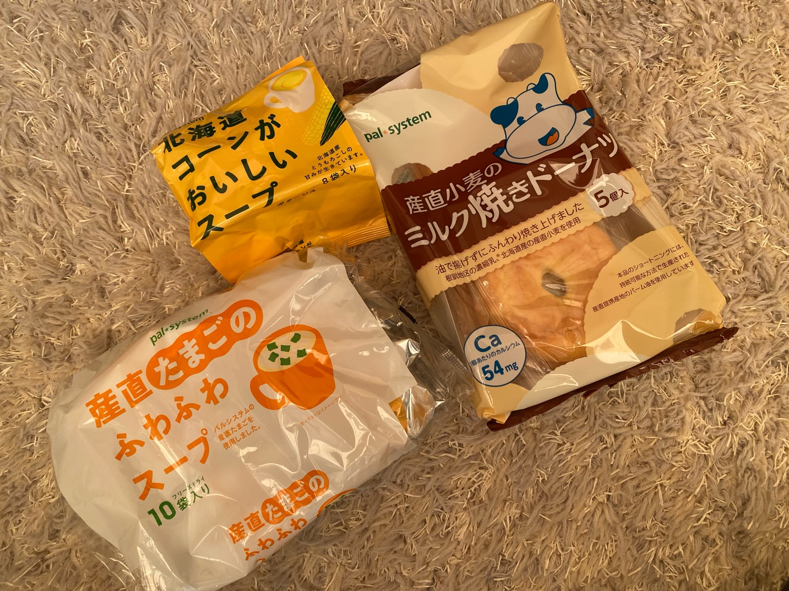 パルシステムさまからは、「北海道コーンがおいしいスープ」「産直たまごのふわふわスープ」「ミルク焼きドーナツ」