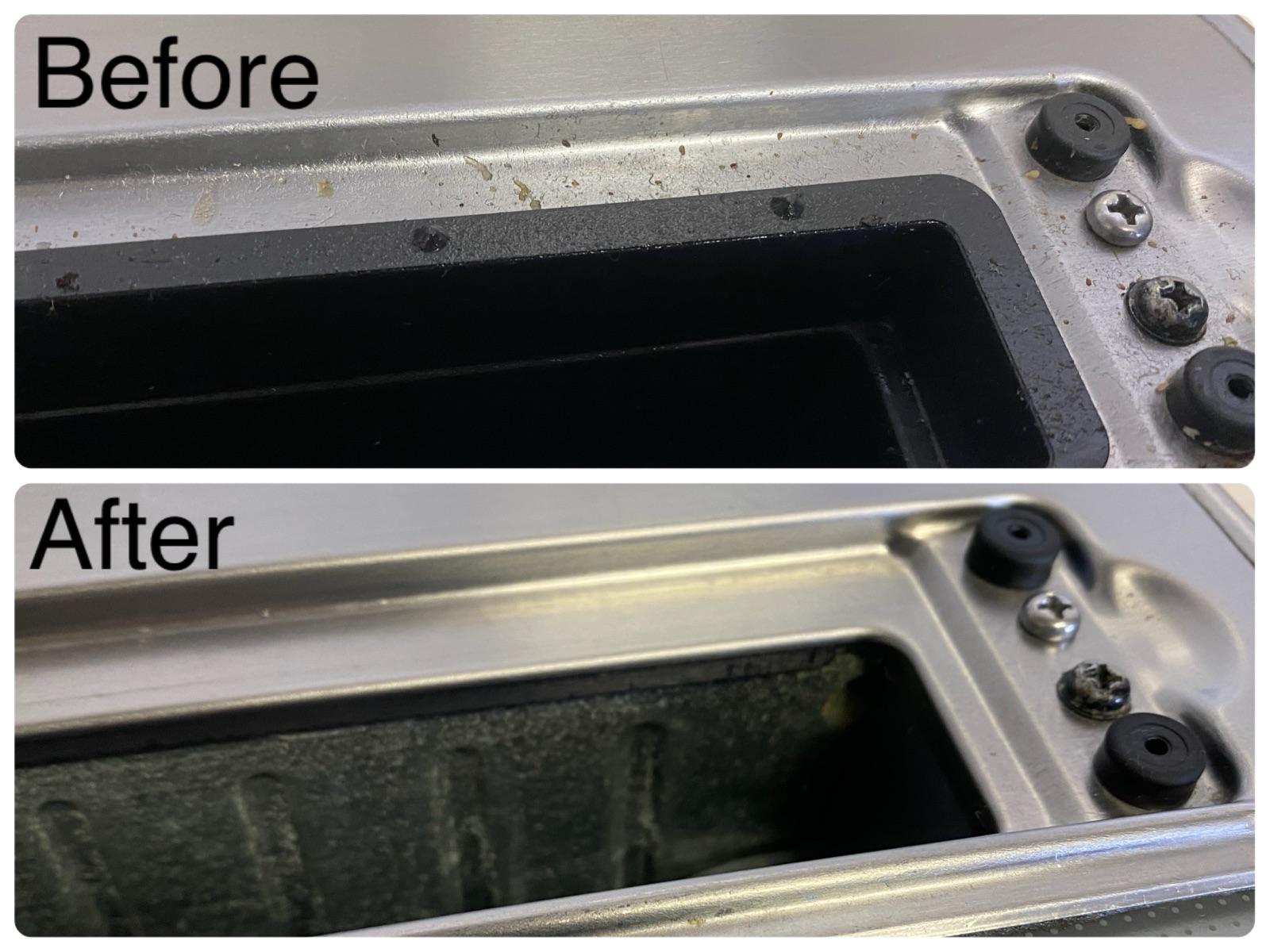 取り外して洗っていた部品を戻して、排気口の掃除が終了!!