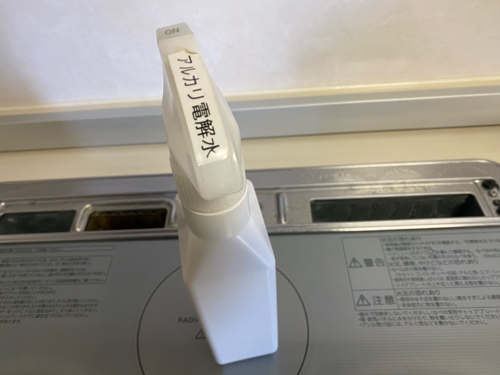 取り外せる部品は取り外して、周りに程よく「アルカリ電解水」をスプレー