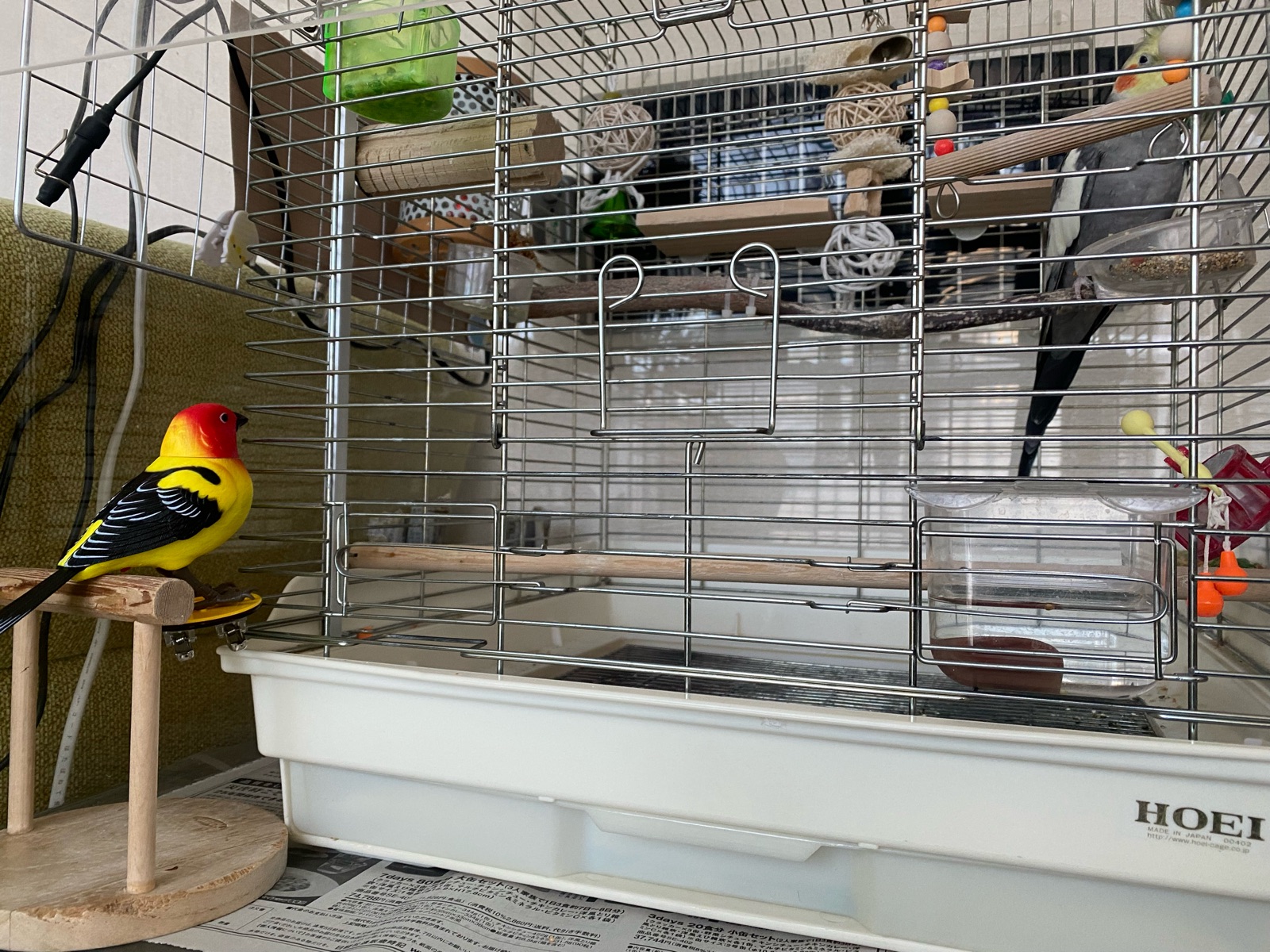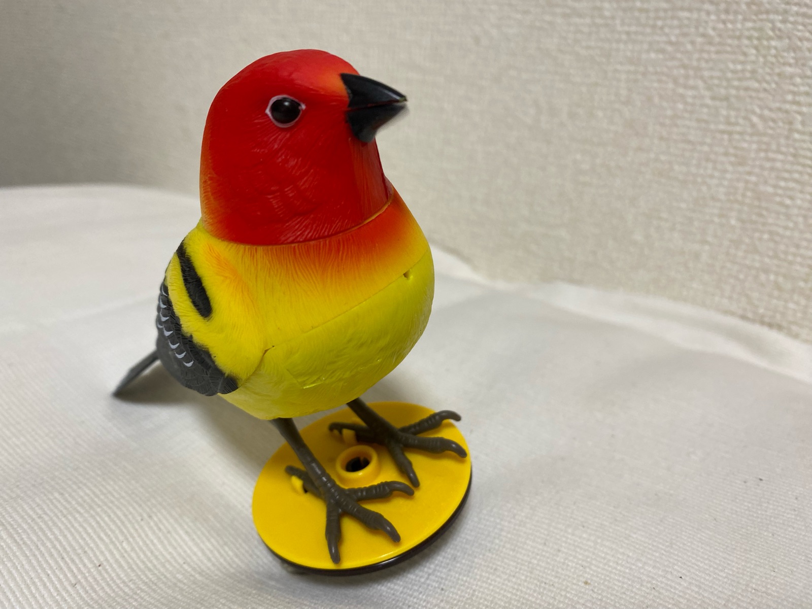 リアルな鳥さんのおもちゃなだけに電池を入れる姿は何となく胸が痛くなる姿。