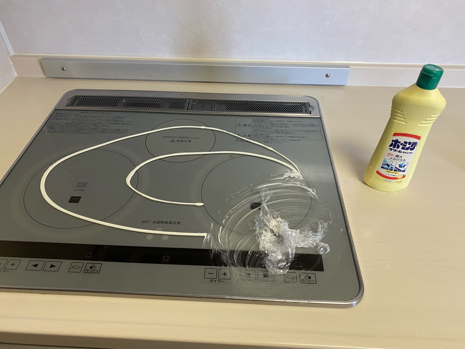 IHコンロやガラストップコンロの掃除は「研磨剤入りの洗剤とラップ」