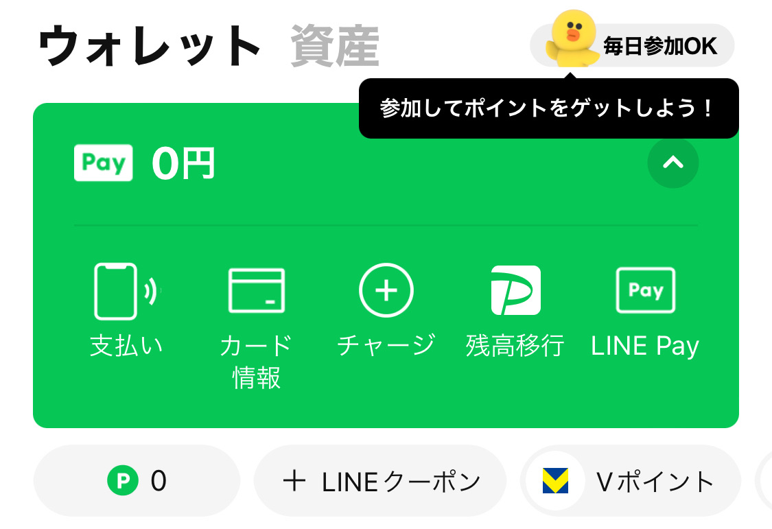 届いたLINEの画面下にも、LINEのウォレット画面にも