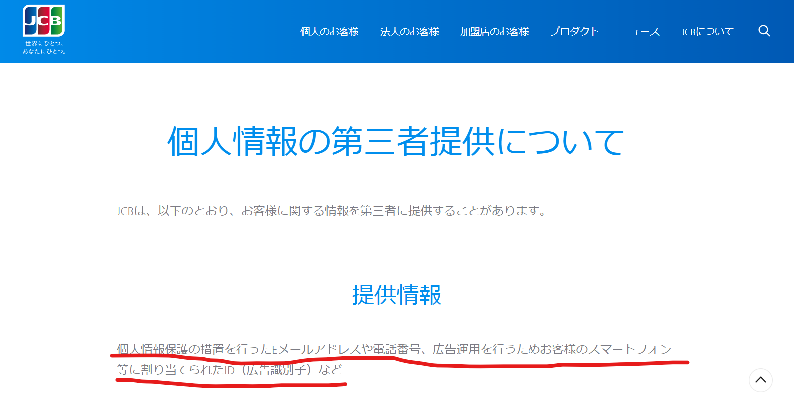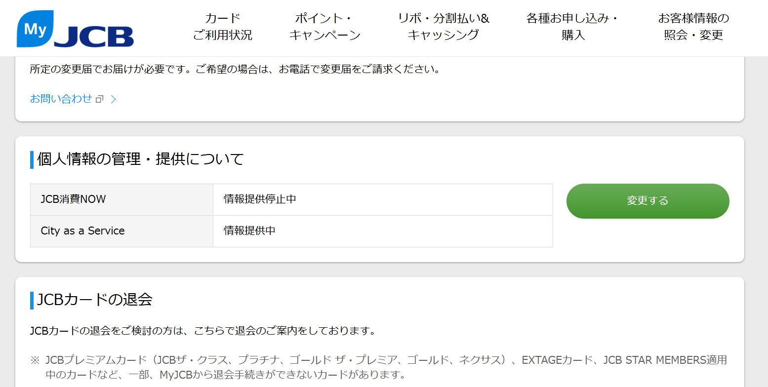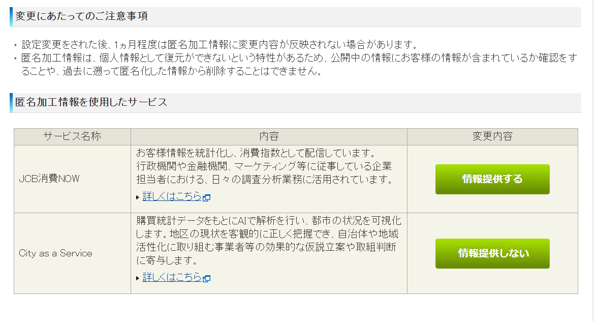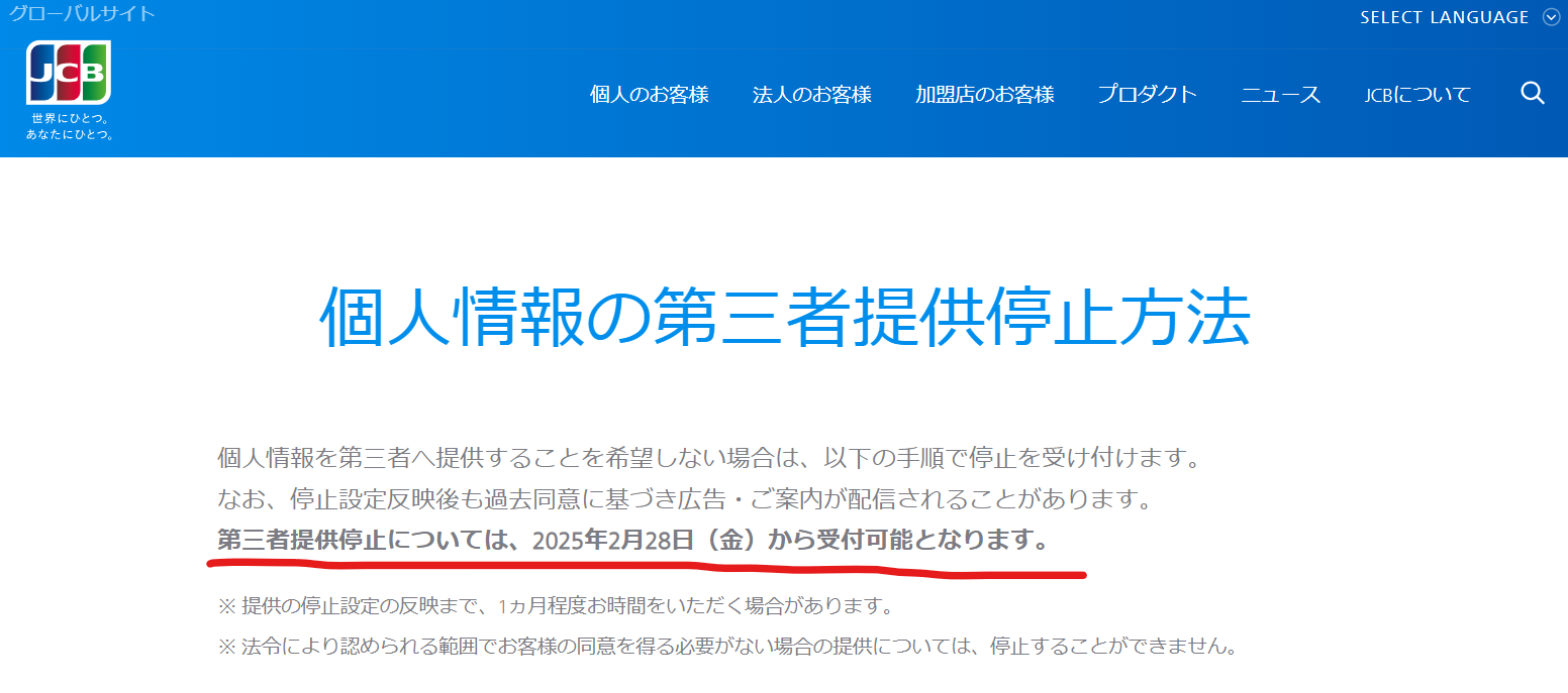 今日の【1日1ヶ所】は「JCBカードの個人情報の第三者提供を停止する」