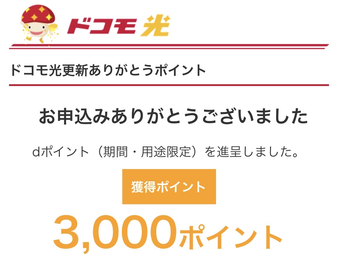 すっかり忘れていたドコモ光の更新ポイントの請求ハガキがあり
