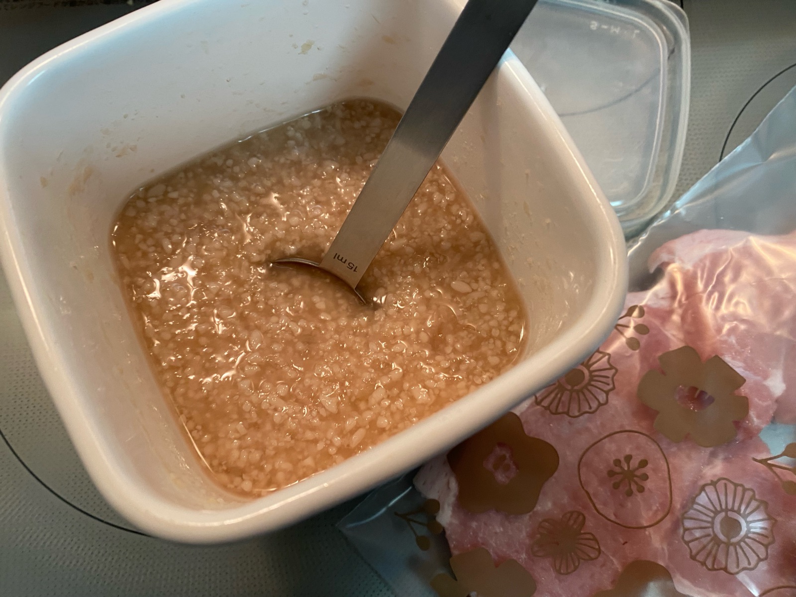 冷蔵庫でしばらく寝かせれば、美味しい豚ロースの下ごしらえが完成♪