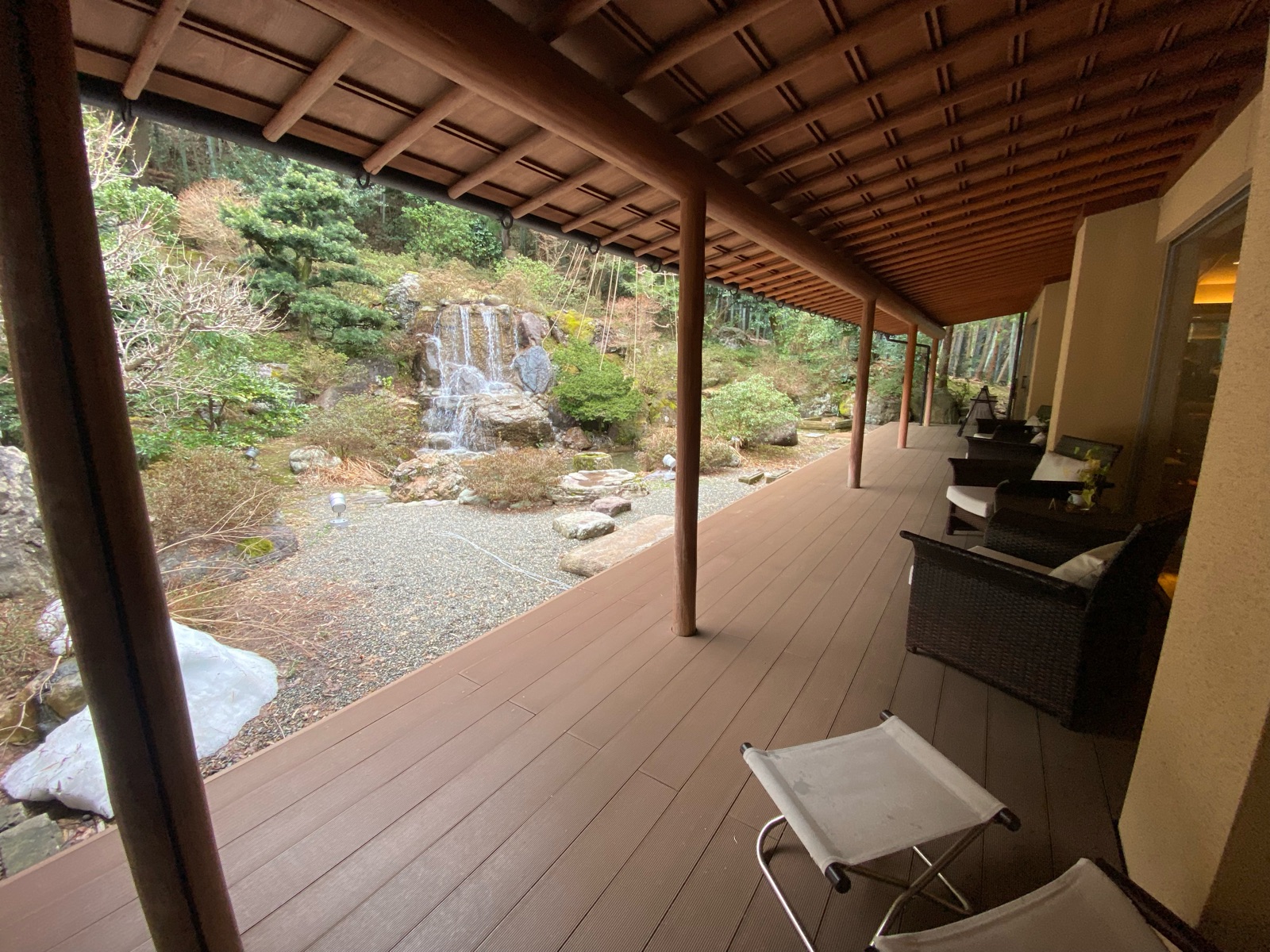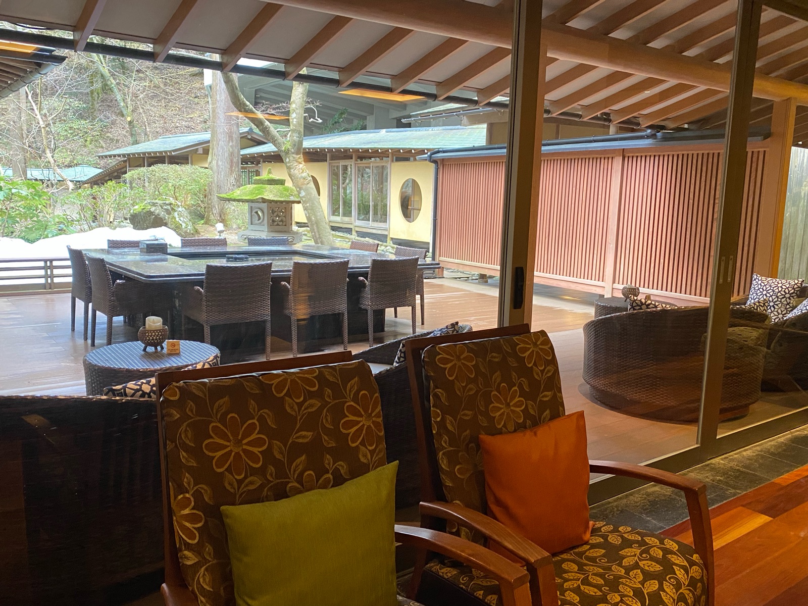 外のテラスも気持ち良さそうでしたが、この日は暖かいとは言えまだ雪が残っている石川