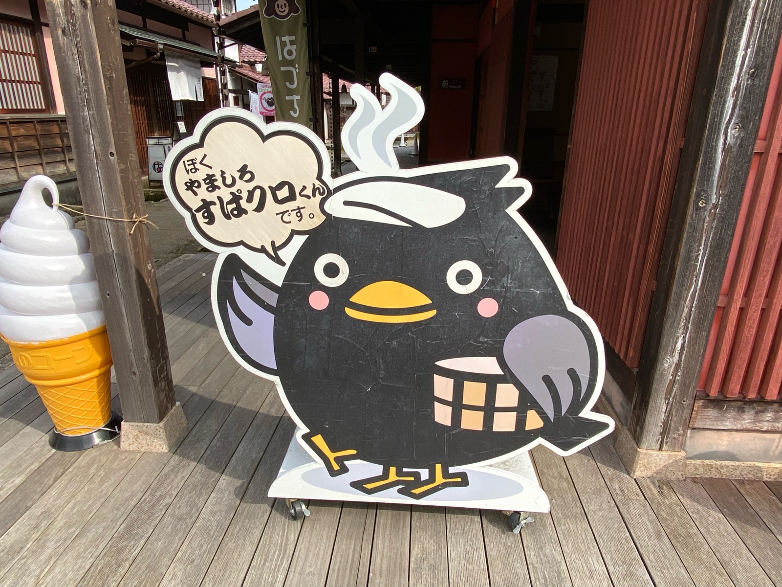 山代温泉のキャラクター ヤタガラスの「スパクロくん」が居たのでパチリ♪