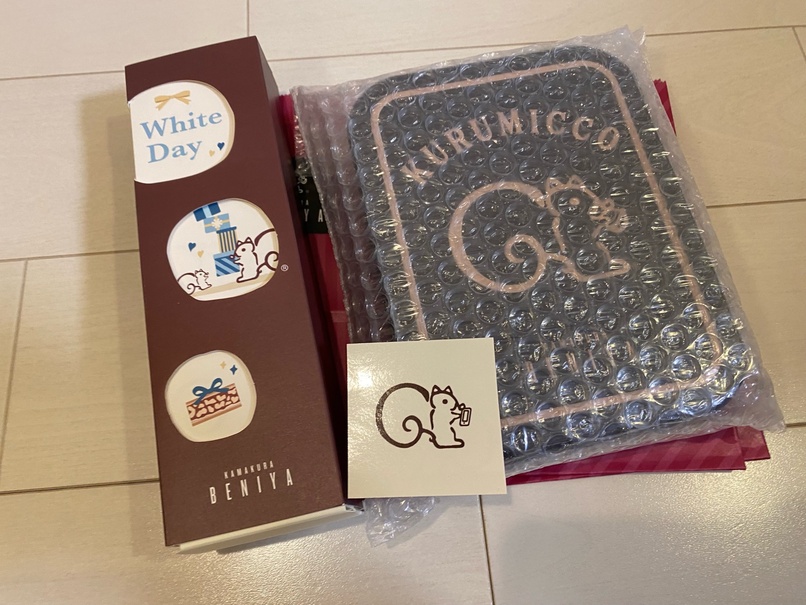 帰宅したら、ホワイトデーのお返しに紅谷のオンラインショップで購入したのクルミッ子も届いていたので、結婚記念日とホワイトデーのプレゼントを貰いました。