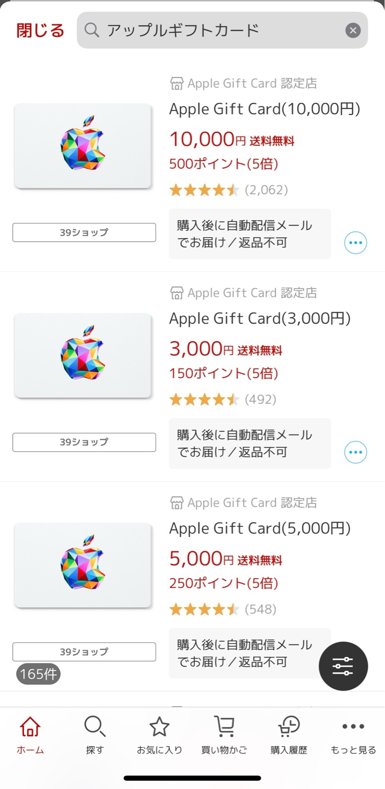ポイントが5倍なので1万円分買えば500円のポイントがつく。