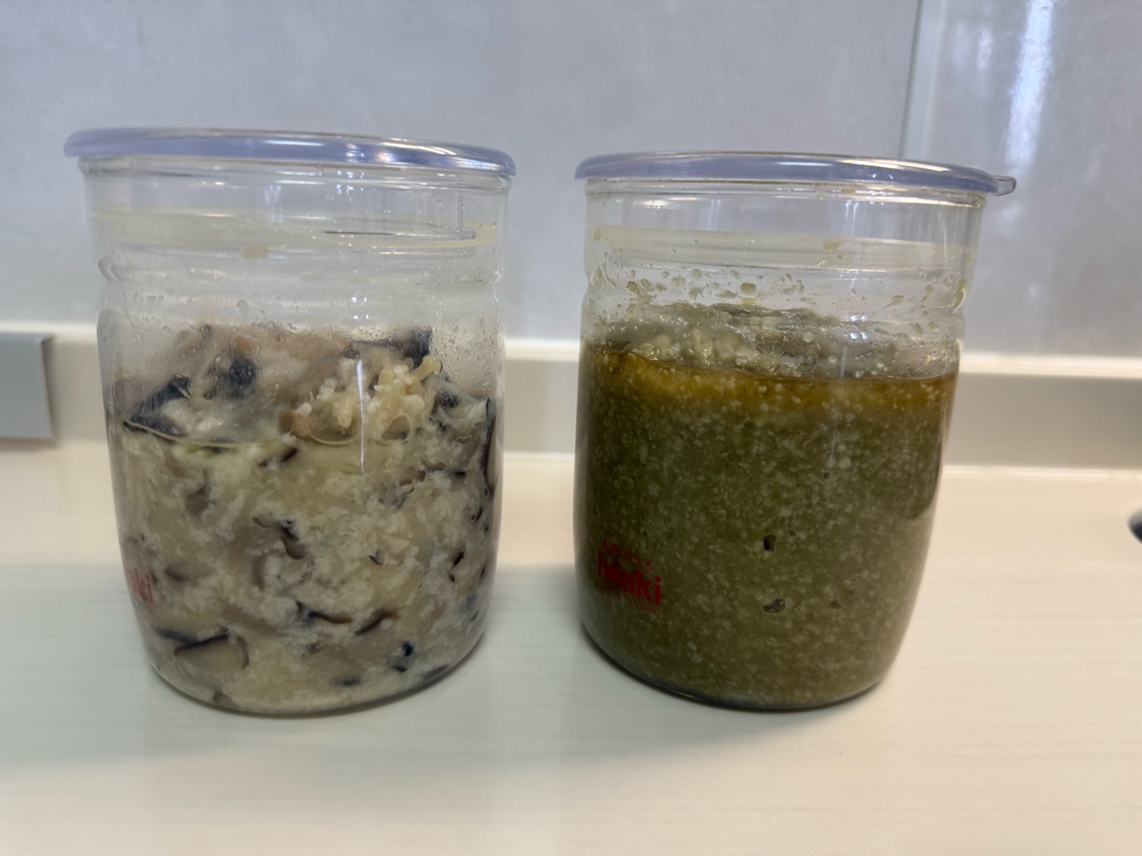 きのこ麹は水分量が増え、中華麹は色が緑になりました。