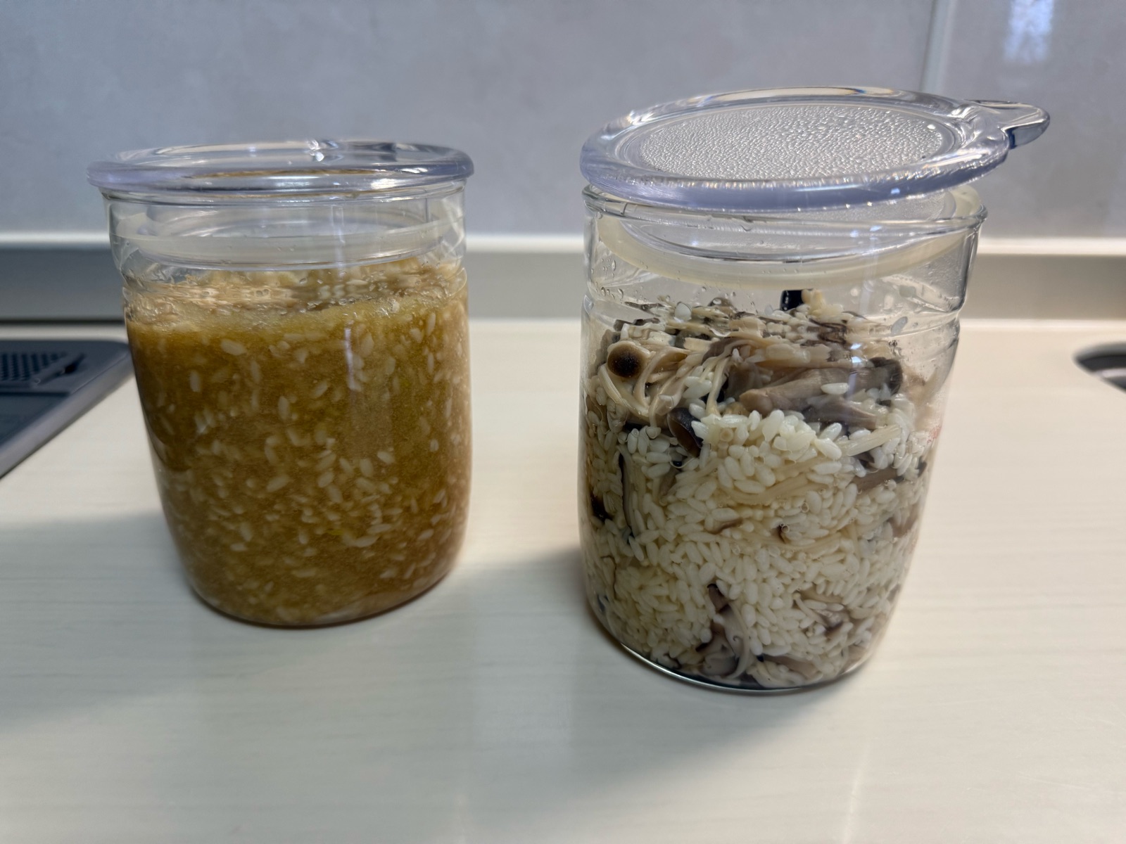 きのこ麹と比べると、麹の膨らみ方が小さい