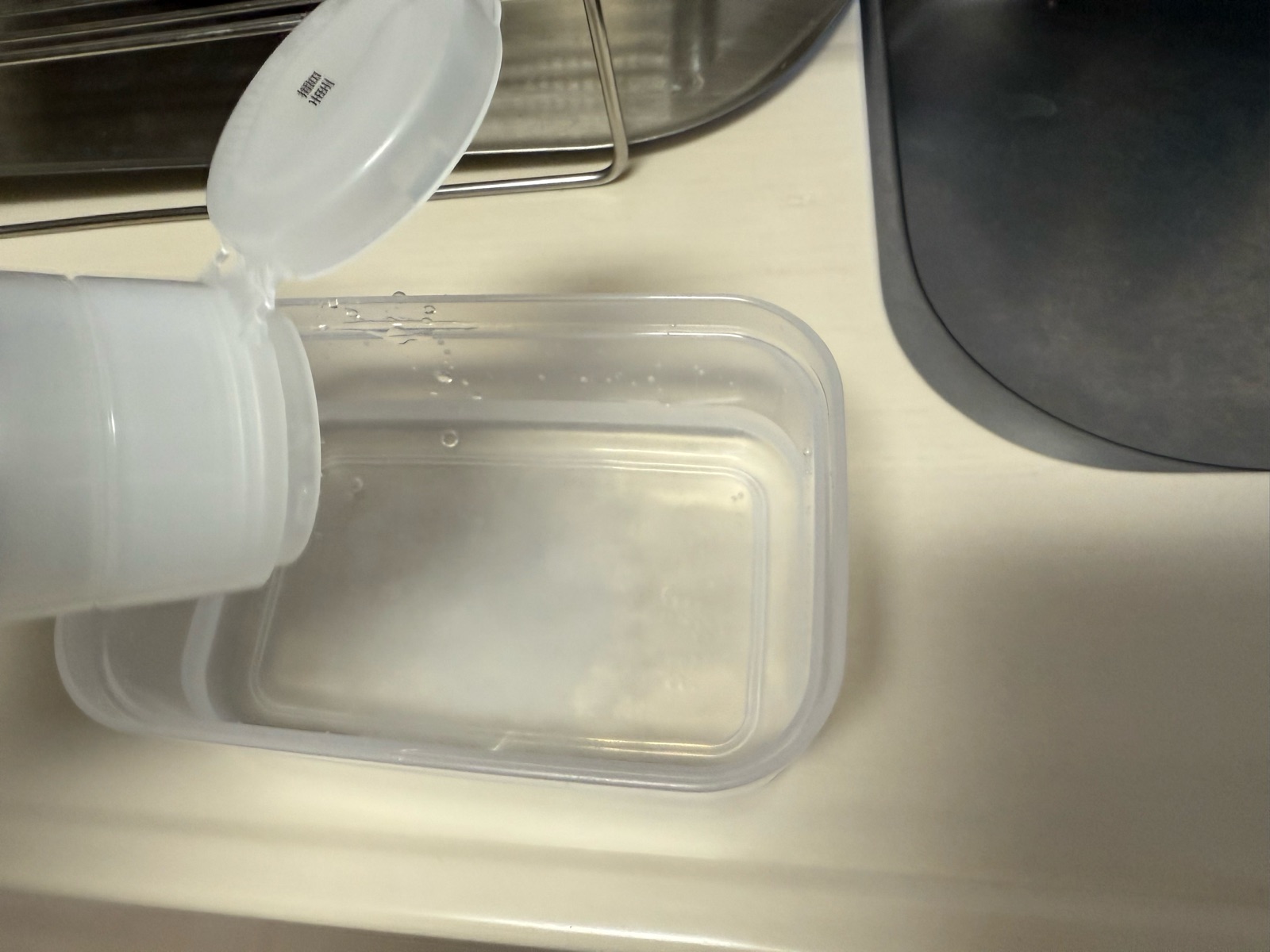 庫内で温めた重曹水をウエスに浸して拭き掃除。