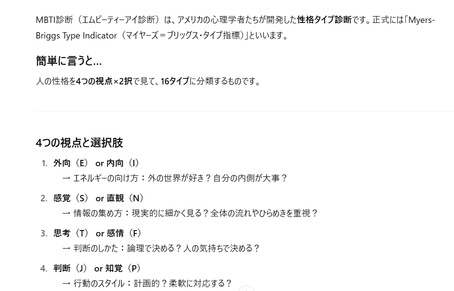 「MBTI診断」を私が説明するには、うまく説明できそうも無かったので