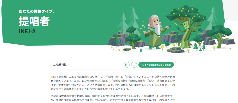 例えば結果が「INFJ」だとしたら